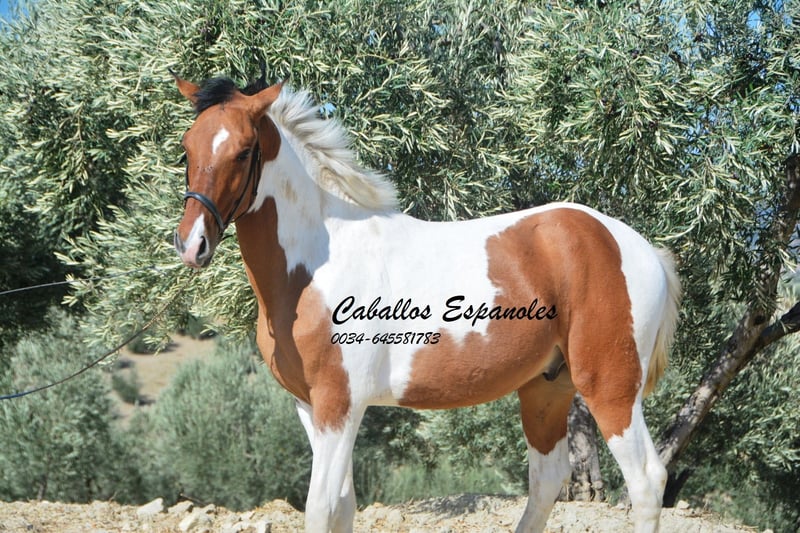 Deze lieve Andalusische voshengst heeft een correcte bouw en een prachtige bonttekening. De jonge hengst staat met zijn vrienden op de wei en geniet ervan om met hen te spelen. In het begin is hij wat verlegen, maar daarna ontpopt hij zich snel en heeft hij genoten van het gekrul van zijn manen. Een geweldige jonge hengst voor zelfopfok. Bij interesse horen we graag van u om verdere details te bespreken of een bezichtiging te plannen. Het paard wordt in opdracht verkocht. Hij kan bij ons blijven onder het zadel. AKU kan op korte termijn geregeld worden. Internationaal vervoer mogelijk.