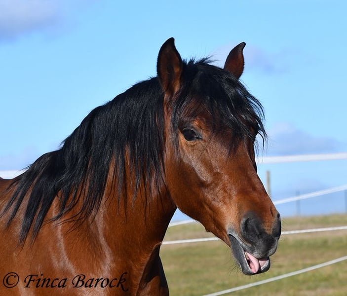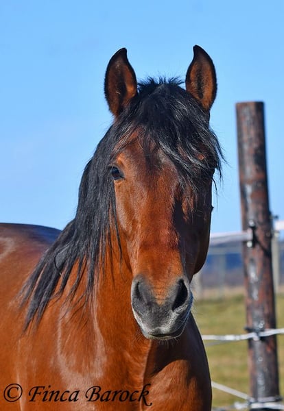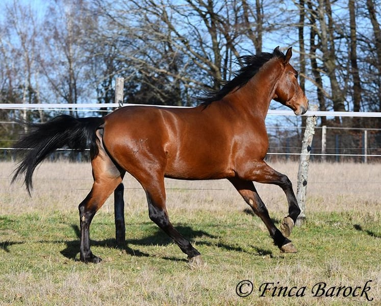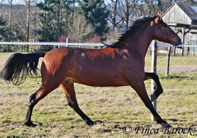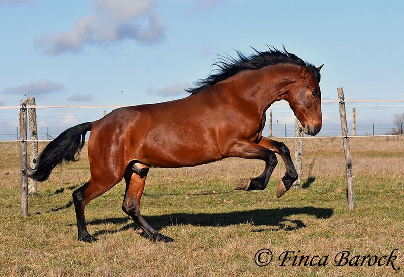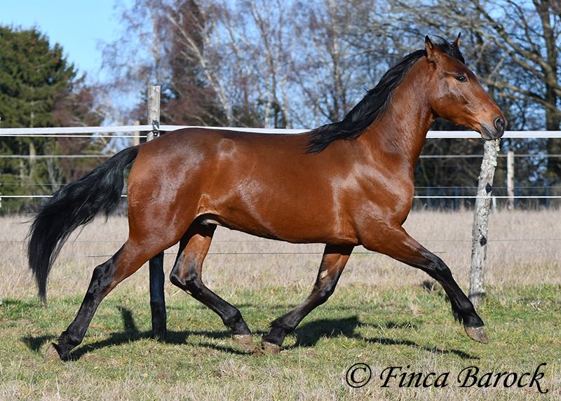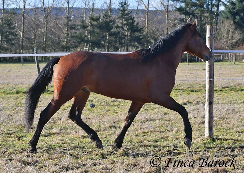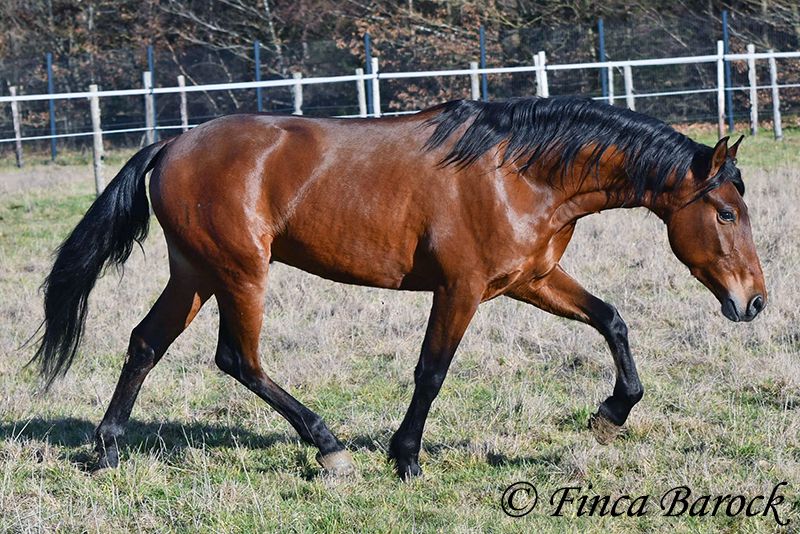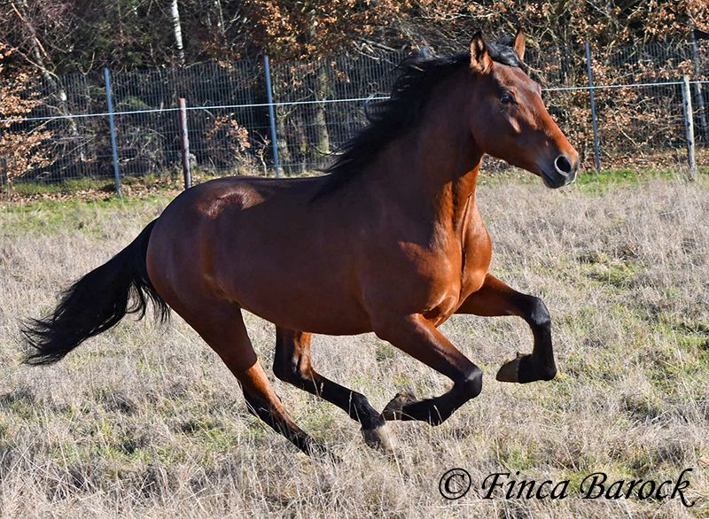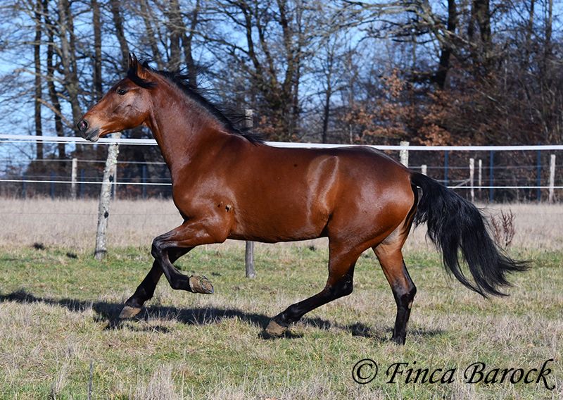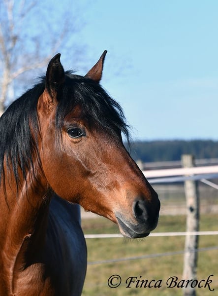Rasse: Andalusier Name: Copito Geschlecht: Wallach Stockmaß: ca. 155 cm Alter: 26.04.2022 Farbe: Braun Preis: 7999 € Vater: o. P. Mutter: o. P. Copito, ist ein kompakter kleiner Bub mit 1a Charakter. Mit seiner freundlichen Art wickelt er einen schnell um seine Hufe. Er steht noch voll in der Entwicklung und wird noch weiter wachsen und auslegen. Im Umgang ist sehr zuvorkommend und genießt ausgiebige Putzeinheiten in vollen Zügen. Copito ist seinem Alter entsprechend in den Grundgangarten angeritten. Er hat einen angenehmen Schwung im Trab und eine sitzbequeme Galoppade. Auch seine ersten Ausritte hat er bereits mit Bravour gemeistert. Dabei zeigte er sich äußerst mutig – an einer „gruseligen“ Stelle übernahm er sogar die Führung, als sich das ältere Begleitpferd zunächst nicht traute. Copito kennt sowohl Herdenhaltung als auch Offenstallhaltung. Im Umgang mit anderen Pferden zeigt er sich sehr verträglich. Über Spielkameraden freut er sich immer, ohne dabei aufdringlich zu sein. Freilaufvideo: https://youtu.be/K9ArOT7yy8w?si=R5AEH0Rs94jJ2Ov_ Kontakt: Finca Barock, Tel. 0173-696 31 81, 56291 Wiebelsheim