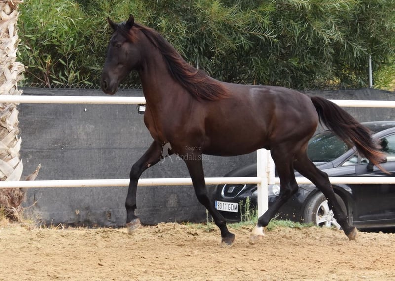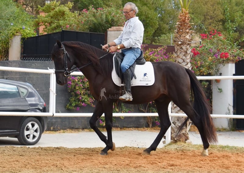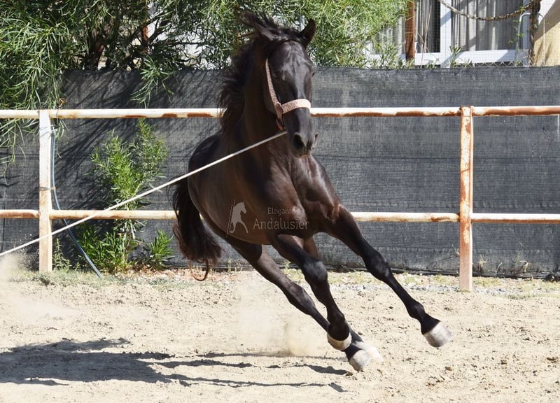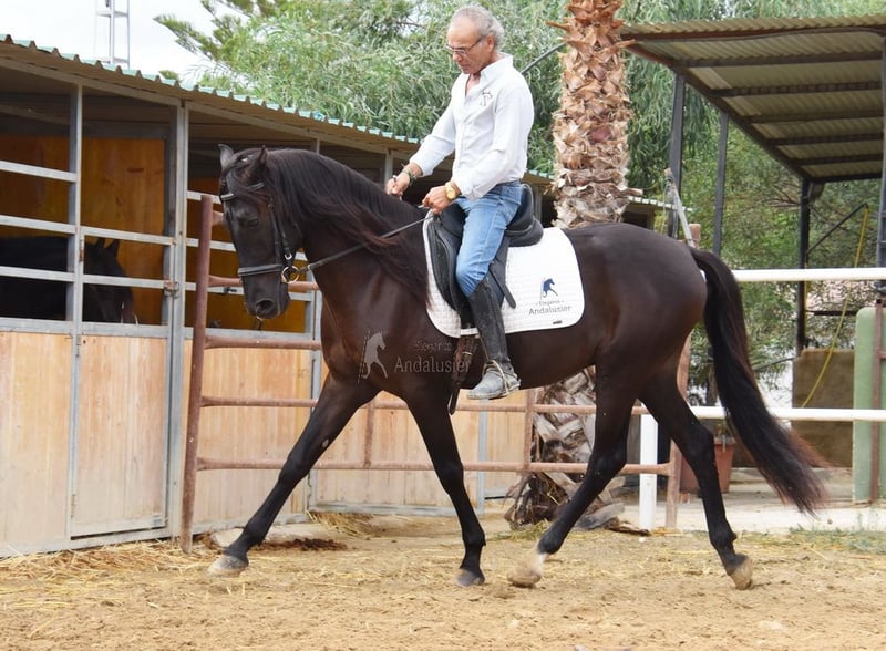 carácter amable, lungido con silla y brida, será montado pronto, buenos movimientos www.elegante-andalusier.com