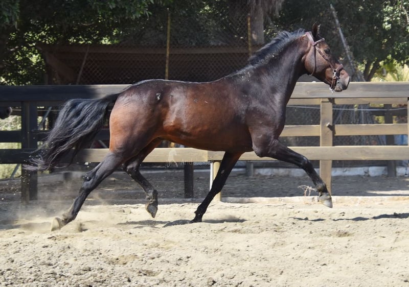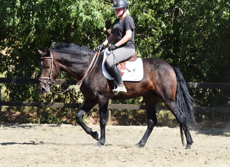 lieber Charakter, in den Grundgangarten geritten und Gelände, steht draußen, gute Bewegungen, hat bereits eine klinische AKU www.elegante-andalusier.com