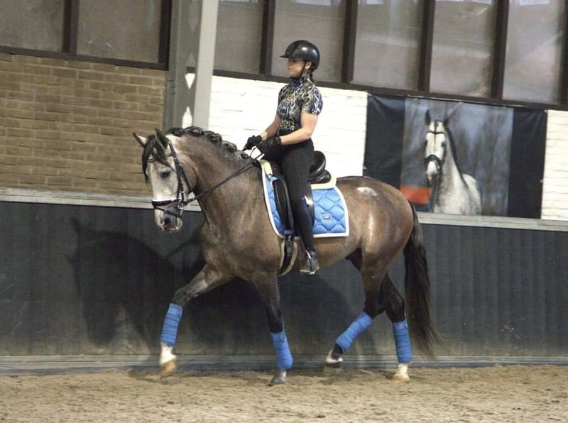 Deze 5-jarige Andalusiërhengst in de uiterst charmante speciale kleur buckskin weet precies: goed uitzien is één ding – karakter hebben is iets anders. En hij kan beide. Opgegroeid op een kleine, fijne fokkerij, kent hij geen boxkoller of slechte manieren. In plaats daarvan: 24/7 groepsleven, veel beweging op uitgestrekt, heuvelachtig terrein en daarmee de beste voorwaarden voor sterke zenuwen, stevige benen en een heldere geest. Wat zijn inzetmogelijkheden? Vrijwel alles wat plezier brengt: Western, Engels, dressuur, Working Equitation, mennen, endurance – hij staat open voor nieuwe taken en leert snel. Zijn harmonieuze bovenlijn, zijn edele hoofd en zijn uitgesproken, prikkelende uitstraling maken hem tot een bijzonder paard. Bij interesse horen wij graag van u (graag met WhatsApp-nummer) om verdere details te bespreken en eventueel een bezichtiging te plannen.