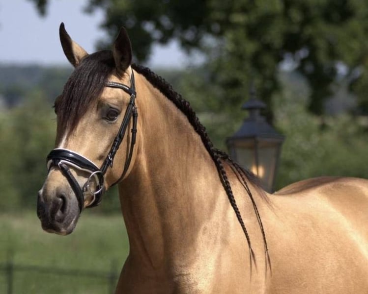 Dieser 5-jährige Andalusier-Wallach in der äußerst charmanten Sonderfarbe Buckskin weiß ganz genau: Gut aussehen ist das eine – Charakter haben das andere. Und er kann beides. Aufgewachsen in einer kleinen, feinen Zucht, kennt er weder Boxenkoller noch schlechte Manieren. Stattdessen: 24/7 Herdenleben, viel Bewegung auf weitläufigem, hügeligem Gelände und damit beste Voraussetzungen für starke Nerven, stabile Beine und einen klar sortierten Kopf. Einsatzmöglichkeiten? Fast alles, was Spaß macht: Western, Englisch, Dressur, Working Equitation, Wanderreiten, Distanzreiten – er ist offen für neue Jobangebote und lernt schnell. Seine harmonische Oberlinie, sein edler Kopf und seine ausgeprägte und prickelnde Präsenz, machen ihn zu einem ganz besonderen Pferd. Bei Interesse freuen wir uns auf Ihre Kontaktaufnahme ( bitte mit WhatsApp Nummer) , um weitere Details zu besprechen und eventuell auch einen Besichtigungstermin zu vereinbaren.