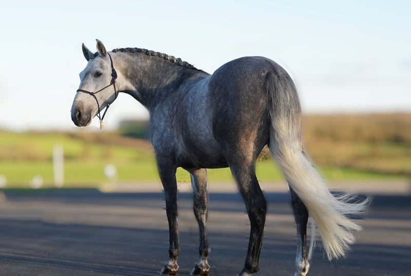 With a heavy heart, I am offering my beautiful Andalusian stallion for sale. He is a particularly gentle and people-oriented horse with a stunning baroque type, a lot of presence, and a pleasant, willing work ethic. Due to my own health issues, I am unfortunately no longer able to give him the attention and riding he deserves. Oleander is a stunning grey stallion with a baroque build and expressive movement. He is intelligent, eager to work, and enjoys forming a bond with his rider. He has been well-started and is familiar with various dressage exercises such as leg-yield and shoulder-in. He moves softly on the bit, is supple in his body, and learns quickly. Like many Andalusians, he is sensitive and intelligent, and he performs best with a calm and confident rider. He has a strong baroque appearance and a lovely character, making him also appealing to riders who appreciate classical dressage or the typical Andalusian type.