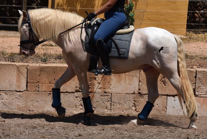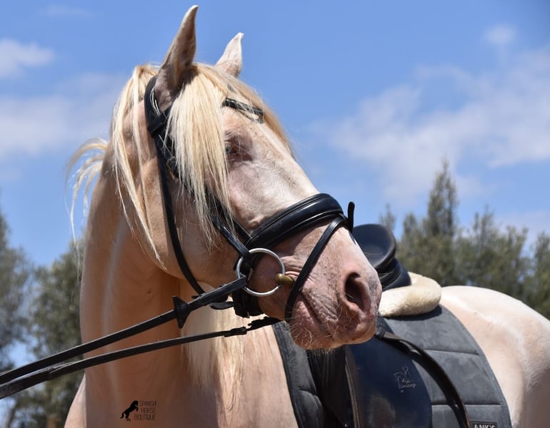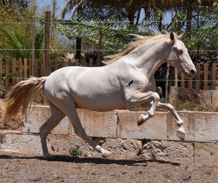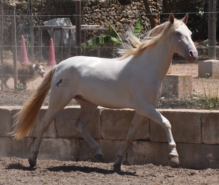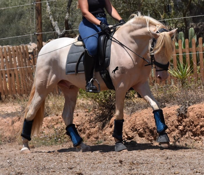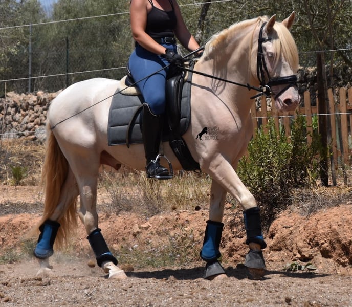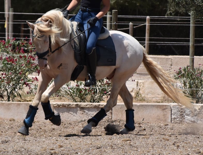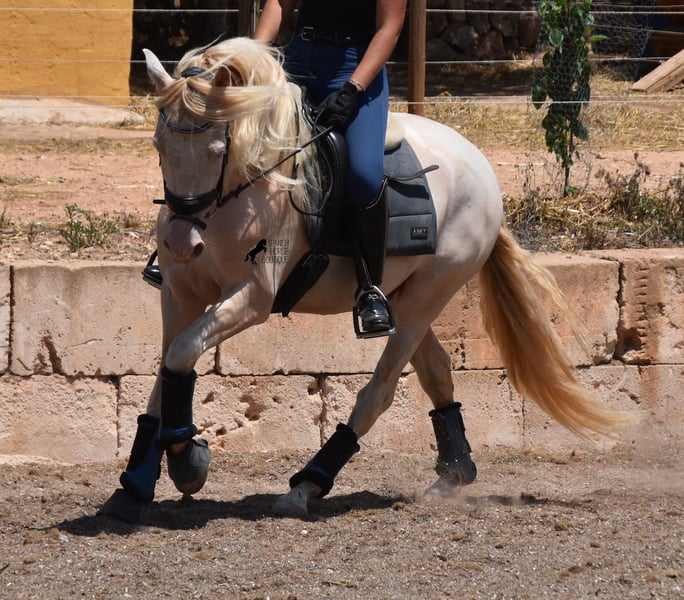 Deze Andalusische ruin, geboren in 02/2020, is een absolute lieverd! Sinds het spenen is hij met zijn eigenaar opgegroeid onder de beste zorg en geniet hij van een heerlijk leven in zijn grote paddock in 24 uurs robuuste houderij met een paardenmaatje en veel honden die hem gezelschap houden. De eigenaar is erg enthousiast over dressuur en hij heeft er het talent en de beweging voor. Helaas is hij met zijn 149 cm te klein om goed mee te kunnen doen. We zoeken daarom een goed thuis voor deze schat. Hij heeft al wedstrijdervaring met klasseringen en is echt braaf voor een jonkie, zelfs buiten zijn normale omgeving. Thuis is hij absoluut cool en wil alles goed doen. Onder het zadel heeft hij een correcte, leeftijdsadequate basis op een watersnackle en is hij niet alleen geschikt voor dressuur, maar ook voor working equitation of western rijden, omdat hij kort en zeer wendbaar is. Zijn sterke rug is bijzonder goed voor een jong paard, wat de juiste training weerspiegelt. Hij heeft ook prachtige heldere benen en wat echt geweldig is, is dat hij ondanks zijn lichtgekleurde huid en de zeer sterke zon van Mallorca, geen huid/vachtproblemen heeft! Een absolute gentleman en een paard van het hart, met een groot hart, in een klein formaat. Prijs naar kwaliteit. Hij is momenteel op Mallorca! Video's op aanvraag. Ik organiseer graag een AKU, paardrijden, transport of zelfs uw reis als u hem persoonlijk komt bekijken. Details vind je op mijn website of in een gesprek. Saludos uit Spanje