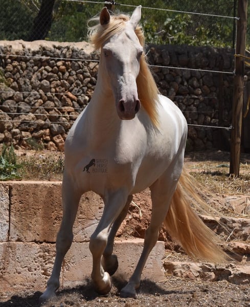 Dieser 02/2020 geborene Andalusierwallach , ist ein absoluter Herzensbub! Seit Absetzer ist er bei seiner Besitzerin unter bester Versorgung groß geworden und genießt ein wundervolles Leben in seinem großen Paddock in 24h Robusthaltung mit einem Pferdekumpel und vielen Hunden, die ihm Gesellschaft leisten. Die Besitzerin ist sehr dressurambitioniert und dafür bringt er auch das Talent & die Bewegung. Nur leider ist er mit 149cm etwas klein, um richtig in den Wettbewerb zu gehen. Daher wird nun ein gutes Zuhause für diesen Schatz gesucht. Er hat bereits Turniererfahrung mit Platzierungen und benimmt sich für einen Youngster wirklich toll, auch außerhalb seines gewohnten Umfeldes. Zuhause ist er absolut cool und will alles recht machen. Unterm Sattel hat er eine korrekte, altersentsprechende Basis auf Wassertrense und eignet sich nicht nur für die Dressur, sondern auch für die Working Equitation oder den Westernbereich, da er kurz und sehr wendig ist. Besonders toll ist sein starker Rücken für ein Jungpferd, was das korrekte Training widerspiegelt. Er hat auch schön klare Beine und was wirklich besonders großartig ist, trotz der hellen Haut und Mallorcas sehr starker Sonne, hat er keine Haut/Fellprobleme! Ein absoluter Gentleman und Herzenspferd, mit großem Herzen, in kleinem Format. Preis der Qualität entsprechend. Aktuell steht er auf Mallorca! Videos gerne auf Anfrage. Gerne organisiere ich vor Ort eine AKU,Beritt, Transport oder auch ihre Reise, sollten Sie persönlich zum Anschauen kommen. Details dazu gerne auf meiner Seite oder im Gespräch. Saludos aus Spanien