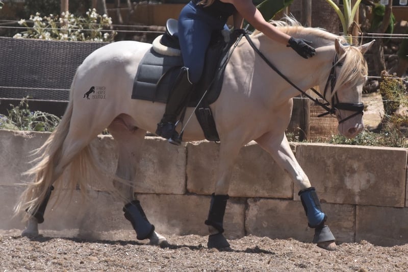 Ce hongre andalou né en 02/2020 est un véritable coup de cœur ! Depuis qu'il a été sevré, il a grandi chez sa propriétaire en bénéficiant des meilleurs soins et il jouit d'une vie merveilleuse dans son grand paddock en stabulation libre 24h/24 avec un copain cheval et de nombreux chiens qui lui tiennent compagnie. La propriétaire est très ambitieuse en matière de dressage et il a le talent et le mouvement pour cela. Malheureusement, avec ses 149 cm, il est un peu petit pour faire de la compétition. C'est pourquoi nous cherchons maintenant un bon foyer pour ce trésor. Il a déjà de l'expérience en compétition avec des classements et se comporte vraiment bien pour un jeune cheval, même en dehors de son environnement habituel. À la maison, il est absolument cool et veut tout faire bien. Sous la selle, il a une base correcte et adaptée à son âge sur un filet d'eau et convient non seulement au dressage, mais aussi à la working equitation ou au western, car il est court et très maniable. Son dos fort est particulièrement génial pour un jeune cheval, ce qui reflète un entraînement correct. Il a également des jambes bien nettes et ce qui est vraiment génial, c'est que malgré sa peau claire et le soleil très fort de Majorque, il n'a aucun problème de peau/poil ! Un gentleman absolu et un cheval de cœur, avec un grand cœur, dans un petit format. Prix adapté à la qualité. Actuellement, il se trouve à Majorque ! Vidéos sur demande. J'organise volontiers un bilan de santé, une garde, un transport ou un voyage sur place si vous venez personnellement pour voir le cheval. Vous trouverez plus de détails sur mon site ou lors d'un entretien. Saludos d'Espagne
