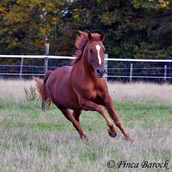 Rasse: Andalusier Name: Rocky Geschlecht: Wallach Stockmaß: 159 cm Alter: 06.05.2018 Farbe: Fuchs Preis: 7900 € Vater: o. P. Mutter: o. P. Rocky, ein absoluter Schmusebär der es liebt durch die Wälder zu streifen! Rocky ist solide in den GGA geritten und braucht sich mit seinen Bewegungen nicht zu verstecken. Auch wenn er gerne im Viereck mitmacht, so liebt er das Gelände. Egal ob alleine oder in der Gruppe, an der Autobahn oder im ruhigen Wald – Rocky ist dabei! Im Umgang ist Rocky sehr verschmust, anständig und gut erzogen. Rocky wurde in der letzten Zeit nicht so viel Gearbeitet und ist bei uns in Verkaufskommission. Er wird im Moment von uns wieder auftrainiert und zeigt sich trotz Pause super anständig unter dem Sattel. Ein Pferd welches auch mal ein paar Tage nicht geritten werden kann und dies nicht gleich krumm nimmt. Rocky ist Barhufer, angeweidet und Herdenhaltung sowie Offenstall gewöhnt. inkl. klinischer tierärztlicher Untersuchung Kontakt: Finca Barock, Tel. 0173-696 31 81, 56291 Wiebelsheim