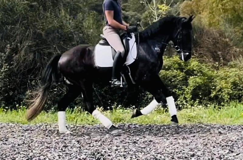 Nice Black Andalusian . Horse with dressage qualities. . Super mind , 5yo, Gelding and 16h. . Performing lateral exercises and simple flying changes. More inf PM or 0034 660 698 281.