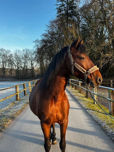 Zum Verkauf steht ein 8-jähriger Andalusier-Wallach in der Farbe braun mit einem Stockmaß von ca. 1,55 m. Er ist ein Pferd, das fest im Leben steht, dabei sehr menschenbezogen, freundlich und aufgeschlossen ist. Im täglichen Umgang zeigt er sich ehrlich, zugewandt und unerschrocken. Er möchte seinem Menschen gefallen und hat große Freude daran, sich zu bewegen und gemeinsam zu arbeiten. Unter dem Reiter überzeugt er durch sehr schöne, weiche und komfortable Gänge. Er ist motiviert, lernwillig und arbeitsfreudig, dabei sensibel und fein, weshalb er kein absolutes Anfängerpferd ist. Er wurde sowohl mit Gebiss als auch gebisslos geritten und zeigt sich dabei kooperativ und aufmerksam. Seine weitere Ausbildung kann individuell und vielseitig gestaltet werden. Der Wallach kennt sowohl Offenstallhaltung als auch Boxenhaltung mit Koppelgang. Im Herdenverband hat er bislang noch keine Erfahrung gesammelt. Er war bei seiner Besitzerin noch nie krank und eine AKU kann gerne vor Verkauf durchgeführt werden. Platz vor Preis ist ausdrücklich erwünscht. Ein tolles Pferd für Menschen, die einen bewegungsfreudigen, fein zu reitenden und menschenbezogenen Andalusier suchen, mit dem sie gemeinsam weiterwachsen und ihren eigenen Weg gehen möchten.