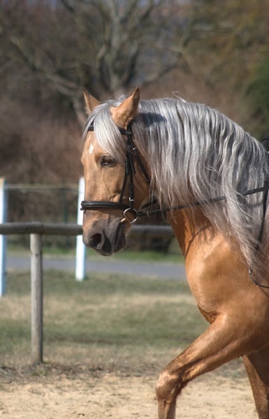 We're looking for a good home for our beautiful palomino andalusian gelding.. He was imported from Spain. He's a beautiful, typical andalusian horse in amazing dark golden palomino color. He has nice movements, is comfortable and soft to ride. He is basic ridden, know lateral work, spanish walk and has big potential for higher school and show . Very clever easy guy , learns very quickly. He regularly hacks out – safe in traffic etc. He is familiar with tractors, dogs, forest animals, village centers, shops, etc. Teddy bear type – Well-behaved, very safe and easy in handling and under the saddle. He's not a horse that requires daily riding to be "normal." He gets into a trailer , so you can load him up and go out into the world yourself. He travells like a child. He's currently in a gelding herd. He's completely insensitive to mares. He's a dominant character in the herd. He's trusting, honest, and straightforward with people, and will follow you anywhere. Not sensitive and uncomplicated horse, Recent x -rays available - very good ! He's regularly trimmed, dewormed, vaccinated, etc. No stable vices, bad behaviour, kicking, bucking etc. He stands whereever you put him, he can stay alone or go alone . Price + 8% VAT Test ride 50 eur (returnet in case of buying the horse) Located western Poland. More info videos per WhatsApp + 48 513 179 245