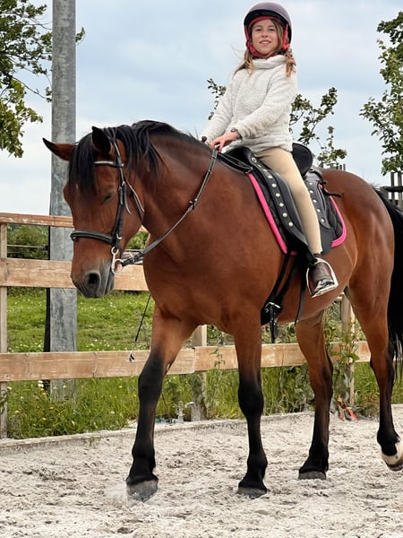 Hallo, ik ben een in 2016 geboren Andalusische ruin met een schofthoogte van ongeveer 1,50 m. Barok gebouwd, sterk en charmant - en ja, ik geef het toe: op de baan behoor ik eerder tot de rustige soort. Tot nu toe ben ik voornamelijk als recreatiepaard gebruikt. Ik loop ook braaf mee in lesuren en help soms bij de ponyclub - daarbij ben ik altijd betrouwbaar en geduldig. In het terrein verken ik stap voor stap. Leren vind ik leuk, maar ik heb daar nog wat ondersteuning en zekerheid bij nodig. Hoewel ik in principe beginnersvriendelijk ben, zoek ik een ervaren ruiter of ruiter die me met een duidelijke, liefdevolle hand laat zien hoe het moet. Want ik heb mijn eigen wil - tijdens het poetsen of buiten in het terrein laat ik soms een beetje karakter zien. Kwaad word ik echter nooit, ik heb gewoon iemand nodig die me begrijpt en consequent aanstuurt. Ik houd het liever rustig: in een kleine stal, met weinig paarden en het liefst in een stabiele ruinenherder voel ik me het meest op mijn gemak. Bij te veel drukte word ik snel onrustig. Als je me die omgeving biedt, ontwikkel ik me tot een grote schat: rustig, aanhankelijk, leergierig en met heel veel hart. Kinderen draag ik trouwens ook braaf - ik let op en blijf betrouwbaar als ze op me rijden. Als je op zoek bent naar een trouw paard om verliefd op te worden, dat je in het dagelijks leven begeleidt en samen met jou wil groeien, dan kijk ik ernaar uit je te ontmoeten. ❤️
