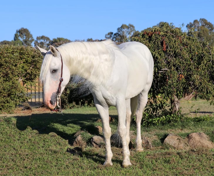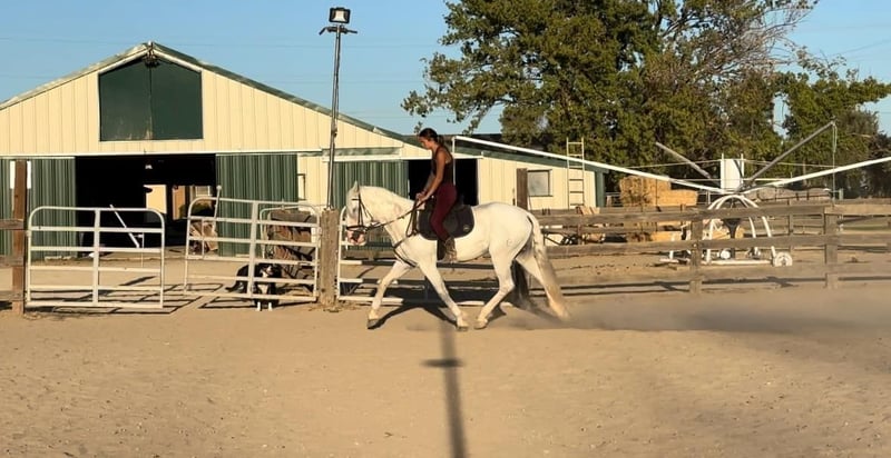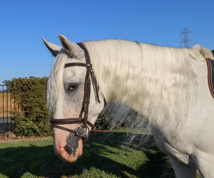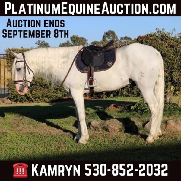 ONLINE AUCTION Place your bids at www.PlatinumEquineAuction.com Starting Bid $3500 Auction ends September 8th, 2024 Need a new saddle? Check out White Rock Saddles on our website or Facebook! Has anyone wanted an all white horse to have there real life unicorn…Meet Fabio 7 year old 15.1 hand Appaloosa Andalusian the prettiest boy you’ll ever see. With a full thick mane, tail, and forelock you’ll be sure to be noticed wherever you take him. Fabio is nothing short of a looker with a great brain. He’s been fantastic to own and sure if a sweet boy he will be the first to nicker at you when he sees you wether in his pasture or tied up he’s always happy to see you and loves to get kisses. He sure is a puppy dog and absolutely loves to be groomed and braided he practically falls asleep. He’s like a pampered king. Fabio is very broke and is an absolute beautiful mover. He’s pretty much dabbled in everything. Fabio has been on the ranch before gathering cows and roping calves in the fields. He is a mountain goat and a dozer all in one he climbs anything and goes all day long with no quit. He is also a dream to ride in the arena with his very pretty moves which makes him smooth as a cloud to ride. He knows his leads, has an easy stop, backs up, collects his head, side passes, does diagonals, moves off the legs. Fabio has been ridden English and looks absolutely beautiful doing it. He has been started over jumps and has taken to it very well. I think he could really excel in the hunter jumpers. He is also great on the trails with going up and down steep hills, creeks, ponds, logs you name it. Fabio has also been to the obstacle courses and has done very well and has crossed everything we have asked him to including teeter totter bridges, streamers, swaying bridges, mattresses, etc. Now Fabio is bred to be a big moving horse and to have big moments so I would t suggest him for a beginner just because he moves very big maybe an intermediate and up. He has no bad habits and no vices. He picks up all 4 feet with ease, stands to be groomed, bathed, saddled. So easy to load up in the trailer. He is good with other horses and good in stall or pasture. Fabio is ready to hit the trails or the show ring. Please feel free to contact us at KW Ranch and Performance Horses at 530-852-2032 for more info or any questions on Fabio. Located in Pleasant Grove, CA. ONLINE AUCTION Place your bids at www.PlatinumEquineAuction.com Starting Bid $3500 Auction ends September 8th, 2024 Need a new saddle? Check out White Rock Saddles on our website or Facebook!