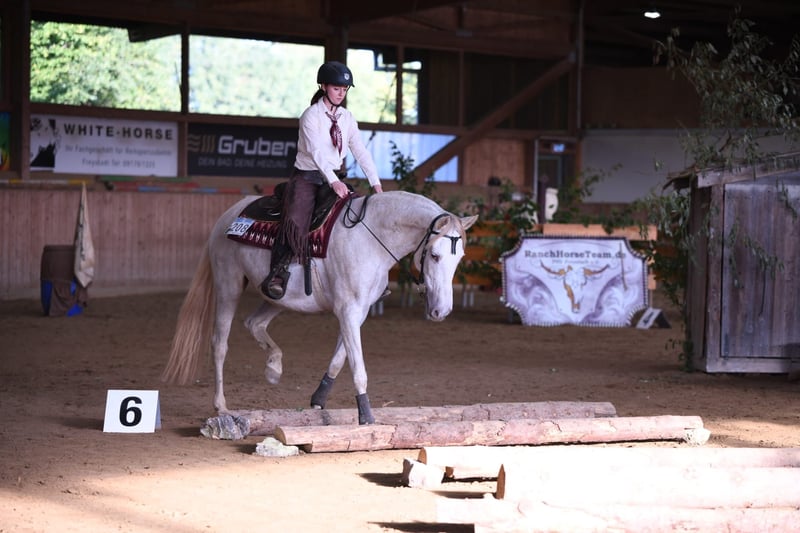 Zum Verkauf steht unsere wunderschöne Andalusier-Stute Rosi, geboren 2014, mit einem Stockmaß von 1,59 m. Rosi ist eine brave, fein zu reitende Stute, die im täglichen Umgang immer freundlich und unkompliziert ist. Sie verfügt über Turniererfahrung und kennt ebenso die Arbeit mit Rindern, was sie zu einer echten Allrounderin macht. Im Gelände zeigt sie sich mutig und zuverlässig. Sie geht alle drei Gangarten auch alleine und bleibt stets gelassen und aufmerksam. Rosi ist sowohl für ambitionierte Freizeitreiter als auch für Reiter mit sportlichen Zielen geeignet, die ein verlässliches und vielseitiges Pferd suchen. Standort: Oberfranken