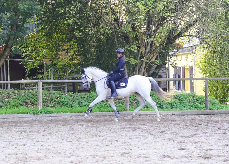 Paquita präsentiert sich als 13 jährige Schimmelstute ausdrucksstark und mit 3 tollen GGA. Sie ist fein im Genick, sehr gut geritten und hat einen absolut liebenswerten Charakter. Auch im Umgang ist sie ein wahrer Schatz. Sie kennt auch Halle, Platz und Geländeausritte. Auch eine Empfehlung für Working Equitation.