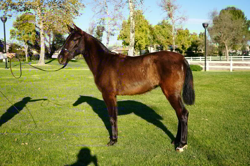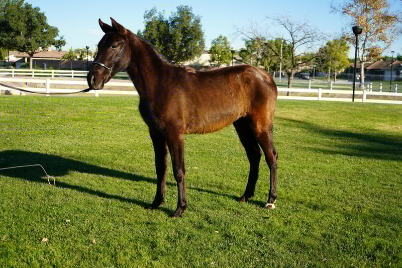 Amorosa is a sweet bay colored Andalusian who will turn 2 this year! She is registered with ANCCE and has a very calm temperament which makes working with her such a joy. She seeks to please and is very attentive to the handler's gestures. She is a fast learner. Amorosa isn't easily spooked by cars and is halter accustomed. Amorosa is very beautiful and would make an excellent addition to your ranch. Please contact me at (951) 454-5441 for pictures/info. My name is Bryan and I'm always happy to assist you.