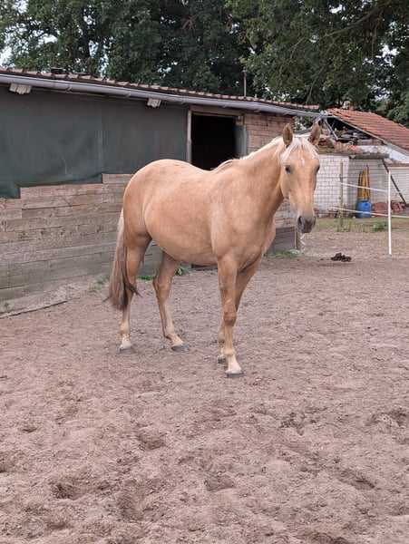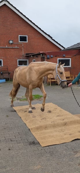 Con gran tristeza, buscamos un nuevo y amoroso hogar de 5 estrellas para nuestra yegua de raza española Larena, ya que lamentablemente no recibe suficiente atención con nosotros. Con dos años y medio, podría comenzar a ser halada y seguir siendo entrenada para convertirse en un excelente caballo de confianza y de ocio. Actualmente mide aproximadamente 1.50 m. Larena nació con nosotros y conoce prácticamente todo lo que un potro debe saber: manipulación de la cabezada, limpieza de cascos, conducción, cepillado, carga en remolque, además de otras cosas como entrenamiento para el miedo y saltos en libertad. También conoce a los perros. Frente a nuevas personas, se muestra muy valiente y curiosa. Con otros caballos, es bastante segura de sí misma. Siempre es la primera en acercarse cuando llama la manada, y en general, es muy sociable y cariñosa con las personas. Deseamos para la dulce Larena que alguien la acompañe con cuidado y cariño en una vida de caballa de ocio variada, buscando un caballo polivalente para el ámbito recreativo de por vida. Es importante para nosotros que, si es posible, solo pase la noche en un box y durante el día esté completamente al aire libre, tal como está acostumbrada. También podemos considerarla como compañera en un paddock abierto. Se entrega con pasaporte de equino. No tiene pedigrí y, por lo tanto, no se vende a criadores. Solo en las mejores manos.