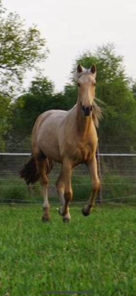 We are heartbroken to be looking for a new, loving 5-star home for our Andalusian mare Larena, as she unfortunately doesn't get enough attention with us. At two and a half years old, she could gradually be backed and further trained to become a reliable and versatile leisure horse. She is currently approximately 15 hands tall. Larena was born with us and has already experienced most of what a young horse should know, including haltering, hoof handling, leading, grooming, loading, as well as some additional training such as desensitization exercises and free jumping. She is also familiar with dogs. She shows herself to be very fearless and curious when faced with new situations. She is quite confident around other horses and is always the first to come running when her herd is called. Overall, she is very human-oriented and affectionate. We are looking for someone who will gently and lovingly introduce her to a varied riding life, seeking a versatile all-rounder for leisure riding for the long term. It is important to us that she is only kept in a box overnight if necessary, and is kept outside during the day, as she is used to. We could also consider a pasture companion arrangement. She will be sold with an equine passport. She has no pedigree and will not be sold to breeders. She is to be placed only in the very best hands.