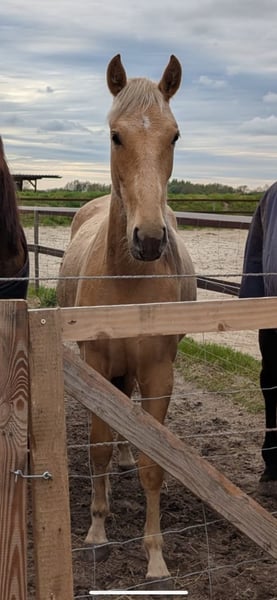 Met pijn in ons hart zoeken we een nieuw, liefdevol 5-sterren thuis voor onze Spaanse merrie Larena, omdat ze hier helaas veel te weinig aandacht krijgt. Op haar tweeënhalf jaar zou ze langzaam kunnen worden aangeleerd en verder getraind om uit te groeien tot een betrouwbaar en veelzijdig recreatie- en dressuurpaard. Ze is momenteel ongeveer 1,50 m groot. Larena is bij ons geboren en kent eigenlijk alles wat een jonge pony moet weten: halster, hoefverzorging, leiderschap, poetsen, laden en ook al wat meer gevorderde dingen zoals schriktraining en vrijspringen. Ze is ook bekend met honden. Ze toont zich tegenover nieuwe mensen zeer onbevreesd en nieuwsgierig. Tegenover andere paarden is ze vrij zelfverzekerd. Ze is altijd de eerste die aankomt rennen wanneer je de kudde roept, en over het algemeen is ze erg mensgericht en knuffelig. We zoeken voor het lieve Larena iemand die haar op een zachte en liefdevolle manier begeleidt in een afwisselend leven als recreatiepaard en die op zoek is naar een allrounder voor de vrije tijd. Het is voor ons belangrijk dat ze, indien mogelijk, alleen ’s nachts in een box staat en overdag volledig buiten, zoals ze het gewend is. We kunnen ons ook voorstellen dat ze in een groepshuis met uitloop mag staan. Ze wordt geleverd met een paardenpaspoort. Ze heeft geen afstamming en wordt daarom niet aan fokkers verkocht. Alleen in de allerbeste handen.
