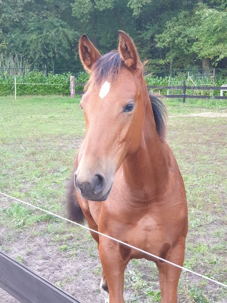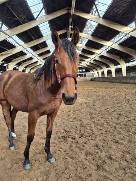 Hallo, Ik zoek een nieuw huisje voor mijn 2,5 jarige merrie. Wordt in 2026 3 jaar oud. Kruising Pre x volbloed. Staat in de opfok volledig onbeleerd. Mooie grote merrie. Heel sociaal naar mens en andere paarden. Loopt leuk en nog nooit iets gemankeerd in afgelopen jaren.