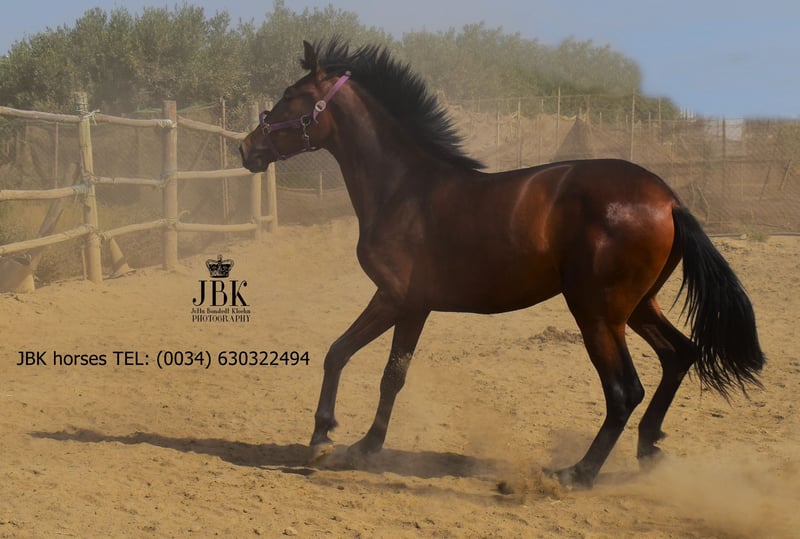️WHATSAPP 003463022494 Bonita es la hija de una yegua PRE aprobada, su padre también es un PRE, pero no está aprobado, por lo que tiene su pasaporte de la UE sin certificado de raza. Es una yegua muy amigable y atenta, que se lleva muy bien en un grupo. Bonita ha sido criada de manera adecuada y conoce muy bien el ABC de los potros. Sus movimientos son excelentes, cuando trota parece flotar sobre el suelo, es un placer verla. Su altura final se estima en aproximadamente 1,64 m más menos 2 cm.