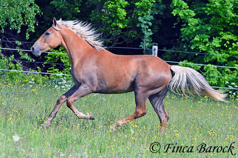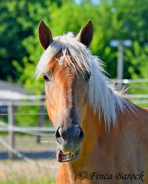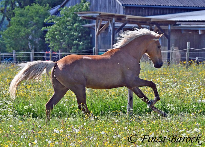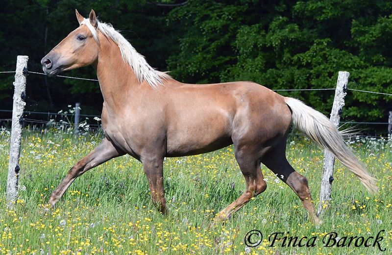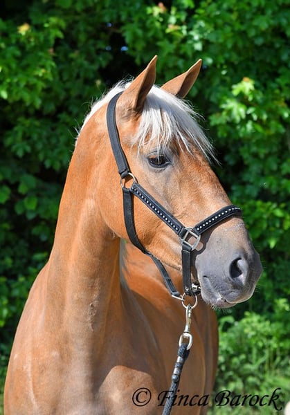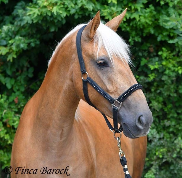 Breed: Andalusian Name: Barbie Gender: Mare Height: 157 cm Age: 03.02.2021 Color: Palomino Price: €7999 Father: n/a Mother: n/a Barbie - the name says it all! This pretty lady in a compact format is a real eye-catcher. She was allowed to settle in with us first and is now gradually being prepared for her future as a riding horse. Currently, she is being lunged with a side reins and saddle and is familiar with the rider's weight at the walk. Barbie was a bit shy in the first few days, but quickly warmed up and is already enjoying cuddles and affection. We are continuing to introduce her step by step to life as a riding horse. In groundwork, she is becoming more routine and enjoys working with us. She also loves going for walks and appreciates new input. Barbie can be a bit unsure in unfamiliar situations at first, but she quickly gains confidence and trusts the experienced person beside her. Of course, Barbie can also stay in training with us. She is used to being in a herd and is very compatible with other horses. Barbie is still fully developing and will grow a bit more. Due to her compact stature, she will be suitable for slightly larger riders as well. Includes clinical veterinary examination and X-rays. Contact: Finca Barock, Tel. 0173-696 31 81, 56291 Wiebelsheim
