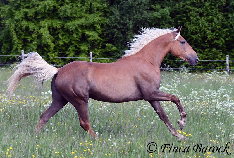 Rasse: Andalusier Name: Barbie Geschlecht: Stute Stockmaß: 157 cm Alter: 03.02.2022 Farbe: Palomino Preis: 7999 € Vater: o. P. Mutter: o. P. Barbie - der Name ist Programm! Die hübsche Lady im kompakten Format ist eine echte Hinguckerin. Sie durfte erstmal etwas ankommen bei uns und wird jetzt Stück für Stück auf das Reitpferdesein vorbereitet. Aktuell ist Sie am Kappzaum mit Sattel und Trense longiert und kennt das Reitergewicht im Schritt und Trab frei. Galoppiert unter dem Reiter sind wir auch bereits einmal, dies hat sie ebenfalls klasse gemeistert. Sie wird Stück für Stück bei uns weiter Ausgebildet und an das Reitpferdesein gewöhnt. Barbie zeigte sich die ersten Tage etwas schüchtern, ist mittlerweile aber total aufgetaut und genießt intensiv Schmuse und Kuscheleinheiten. Generell ist Barbie sehr Ihrem Menschen zugewandt. Sie hat extreme Freude in der Freiarbeit, folgt hier wie ein Hund. Auch Spazierengehen findet Sie klasse und freut sich über neuen Input. Barbie ist in fremden Situationen durchaus erstmal etwas unsicher, bekommt aber schnell Routine und vertraut dem souveränen Menschen neben sich. Natürlich kann Barbie auch noch bei uns in Ausbildung bleiben. Sie ist Herdenhaltung gewöhnt und zeigt sich sehr verträglich. Barbie steht noch voll in der Entwicklung und wird noch etwas wachsen. Durch Ihre kompakte Statur wird Sie gut auch etwas größere Reiter abdecken können. inkl. klinischer tierärztlicher Untersuchung und Röntgenbildern inkl. klinischer tierärztlicher Untersuchung und Röntgenbildern Kontakt: Finca Barock, Tel. 0173-696 31 81, 56291 Wiebelsheim