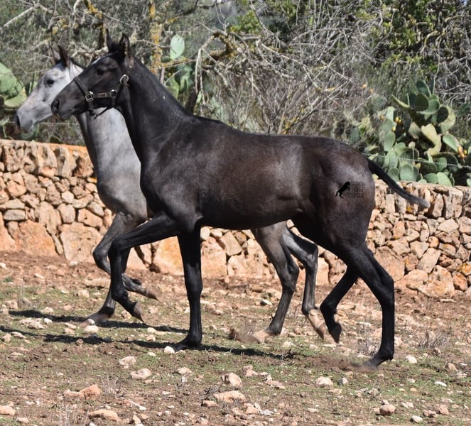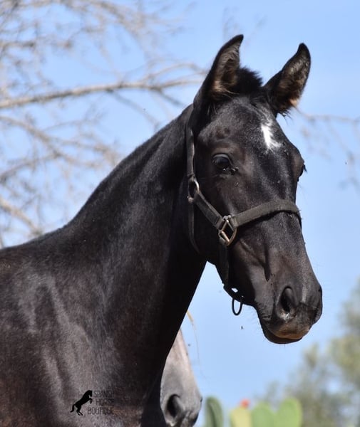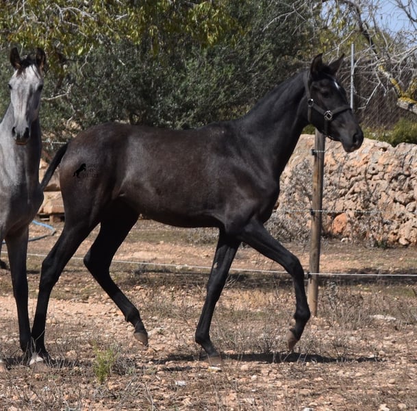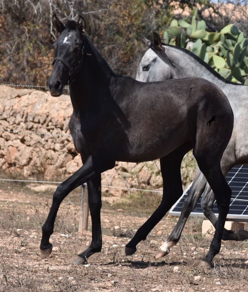 This PRE mare, born in 2023 (Andalusian with ANCCE breed certificate), is bred in the popular FERRERO line and Yeguada Militar on her father's side. This is also reflected in her open-minded and friendly character, which is immediately noticeable even though she is still completely raw. On her mother's side she is bred in modern lines, which is reflected in her size, as the young lady will certainly be 165 cm, if not more! She still has a dark coat, but she will shed. So with every coat change you have a horse with a new look ;) Thanks to the hard, stony ground and her robust attitude, she has very clear legs and good hoof quality. She lives outside 24 hours a day with a friend and is therefore well hardened in all weather conditions (it gets cold and frosty even in winter!). There is the possibility to leave her longer in Mallorca for breeding, but she would be ready to leave and come to you :) Videos and pedigree on request. Her location is Mallorca. I would be happy to organize a foal AKU on site, transport or even her trip, should you come to see her in person. Details on my site or in conversation. Saludos from Spain