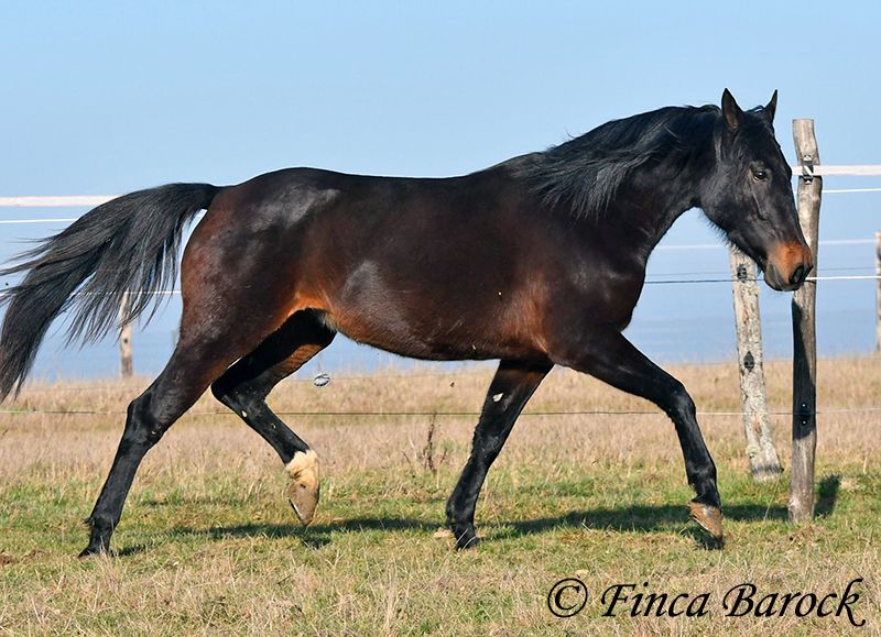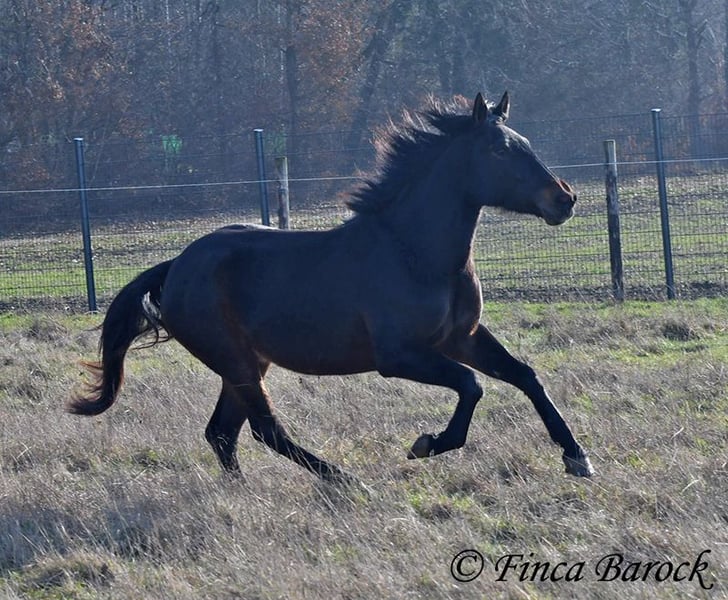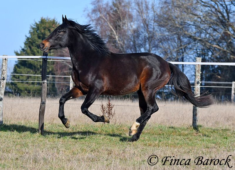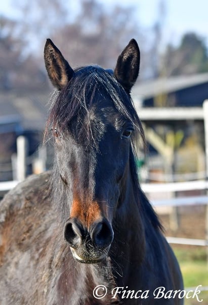 Rasse: Andalusier Name: Africana Geschlecht: Stute Stockmaß: 156 cm Alter: 17.04.2022 Farbe: Schwarzbraun Preis: 9500 € Vater: o. P. Mutter: o. P. Africana, unsere sanfte, sehr verschmuste Maus mit 1a Charakter. Es gibt Sie einfach, diese Jungpferde welche eine unglaublich hohe Grundcoolness mit sich bringen. Africana gehört auf jeden Fall dazu. Sie wird erst im April 4 Jahre, benimmt sich im Umgang aber deutlich ruhiger und gelassener als viele ältere Pferde. Dazu liebt Sie Kinder. Und diese Sie. Es ist total auffällig das alle Kinder bei Ihr stehen bleiben und mit ihr schmuse wollen oder Africana Putzen oder Führen möchten. Reiterlich ist Africana in den GGA geritten, sowohl Viereck als auch im Gelände. Natürlich ist sie mit ihrem Alter noch am Anfang Ihrer Ausbildung. Trotzdem vermittelt Sie bereits ein tolles Reitgefühl und möchte es Ihrem Reiter immer recht machen. Sie wurde auch schon von Kindern und Jugendlichen geritten und verzeiht auch durchaus kleine Reiterfehler. Wir können uns gut vorstellen dass sie bei weiter guter Ausbildung auch von einem schwächeren Reiter mitgeritten werden kann. Im Gelände ist Sie aufmerksam und mutig. So geht Sie auch vorweg, wenn andere Pferde es zu gruselig finden (und schleppt die älteren mal eben so ab) Sie steht bei uns zusammen mit ihrer Freundin Señorita draußen und zeigt sich verträglich. Eine absolut tolle Lady, für jeden der ein Pferd mit einem grundsolidem Charakter sucht. Bei Africana sind schon gute Grundlagen gelegt, sie aber noch total offen für neues und kann dementsprechend weiter gefördert werden. Kontakt: Finca Barock, Tel. 0173-696 31 81, 56291 Wiebelsheim