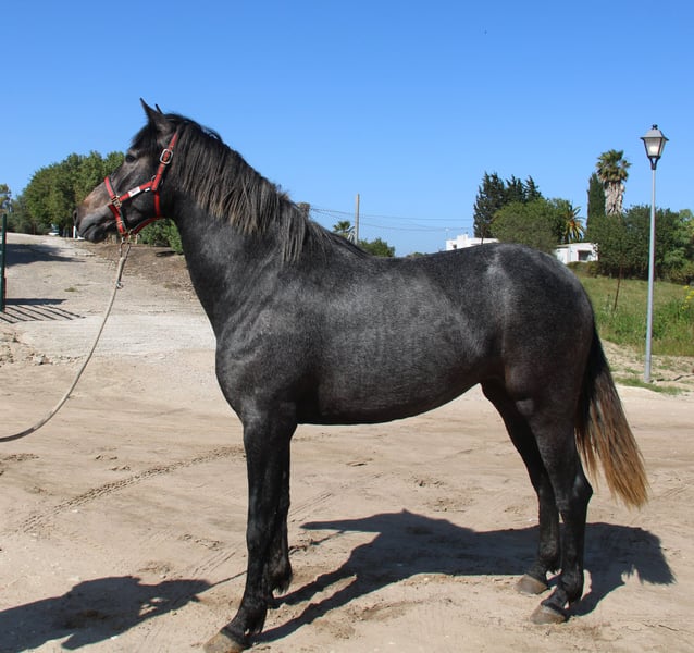 Sabana is a baroque young mare with a high percentage of Arabian blood, which is reflected in her temperament. She is absolutely well-behaved, cooperates nicely, and is always manageable, but she needs a person with horse experience who can handle her energy. She is familiar with saddle and bridle on the lunge, is very clear-headed, and enjoys having a task to do. If desired, Sabana can stay with us for further training. A vet check can be arranged. Transport will be organized internationally. Videos available upon request.