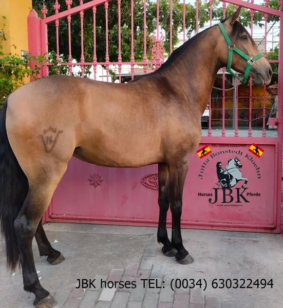 Super liebe junge Andalusier Falbstute Rosa sucht ein Zuhause. Wer Spass daran hätte diese wunderhübsche Stute weiter zu fördern, wird mit ihr nicht verkehrt liegen. Sie kennt das Longieren, den Sattel und Trense und den Reiter auf ihr. Dabei zeigt sie sich unerschrocken. Es wird nicht schwierig werden sie weiter in ihrer Aufgabe als Reitpferd zu festigen. Rosa wuchs im Herdenverband auf und ist somit auch gut sozialisiert. Sie sucht keinen Streit, und geht Quereleien innerhalb einer Herde eher aus dem Weg. 1, 49 m zur Zeit. 4 Jahre.