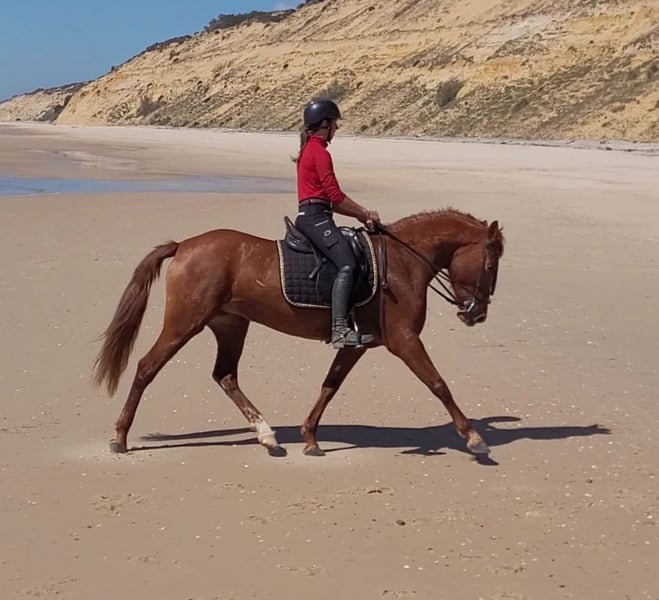Rasquiña ist ein echter Allrounder. Obwohl sie erst seit September 2025 gearbeitet wird ist sie bereits ein richtiges Verlasspferd. Sie ist im täglichen Umgang ruhig, verschmust und gut erzogen. Auch in fremder Umgebung ist sie absolut entspannt. Sie ist regelmäßige Ausflüge und Anhängerfahren gewohnt. Auch Straßenverkehr mit vielen Autos, Pferden und Kutschen bringt sie nicht aus der Ruhe. Beim Reiten ist sie sehr fein an den Hilfen und hört ihrem Reiter gut zu. Sie möchte immer gefallen und ist für ein junges Pferd sehr gut ausbalanciert und einfach zu reiten. Sie geht fleißig vorwärts, ohne dabei zu rennen. Dinge wie Außengalopp und erste Seitengänge fallen ihr leicht. Im Gelände geht sie problemlos vorne oder hinten oder auch alleine. Sie ist immer mutig und gelassen. In der Herde ist sie eher rangniedrig und kommt problemlos mit allen anderen Pferden aus. Ich kann mir Rasquiña sehr gut bei jemandem vorstellen, der das ein oder andere Abenteuer mit ihr erleben möchte und einfach einen zuverlässigen Partner sucht. Auch für Working Equitation wäre sie sicherlich gut geeignet. Aufgrund von Alter und Ausbildungsstand wird sie natürlich nicht als reines Anfängerpferd verkauft. Gerne könnte sie auch noch zur weiteren Ausbildung hier bleiben.