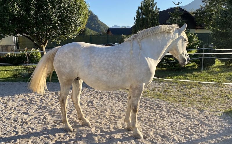 I am selling my expressive Andalusian mare LUNA (born 03/2021, approx. 1.54 m, without papers). She is of the classical Baroque type and impresses with her friendly, sensitive, and spirited nature. Luna is very people-oriented and shows motivation and eagerness to learn – both in groundwork and under saddle. Since autumn 2024, she has been trained in classical riding art (groundwork and under saddle). Regular courses and monthly training sessions with qualified vertical trainers accompany her development. She confidently navigates hilly terrain – promoting muscle development and endurance. In 2024, she was a caring mother to a colt (RA) and displayed a particularly trusting and balanced demeanor. She is familiar with loading into a trailer and the farrier (shod on all four). Horse passport available, microchipped, dewormed, teeth done. Optional: Ibero saddle – Alpha Vaquero Premium & Iberian bridle available separately. Further information & photos available personally or at www.wuehrer.at/pferde.