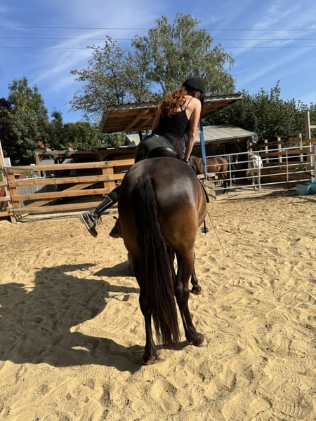 Da wir aus privaten Gründen unsere Pferdehaltung aufgeben müssen sind zwei Pferde zu Verkauf. Das hier ist Freya. Eine bald 5-jährige Spanier Mix Stute. Sie ist ca. 158 cm groß. Freya wurde im vergangenen Jahr schonend angeritten und zeigt sich sehr gut unterm Sattel. Ihre drei Grundgangarten sind alle so als würde man auf einer Wolke schweben. Sie ist super bequem und angenehm zu sitzen und hat schon einen außergewöhnlich gesetzten Galopp für ihren Ausbildungsstand. Freya ist ein sehr feines und gelehriges vielseitig gearbeitetes Pferd. Wir machen viel Bodenarbeit, Freiarbeit, Handarbeit, Doppellonge usw. Sie kann vom Boden und unterm Sattel die meisten Seitengänge. Freya ist ein sehr aufgeschlossenes, mutiges und neugieriges Pferd. Sie ist absolut menschenbezogen und verschmust. Sie kann auch schön einparken und spanischen Schritt. Im Gelände lässt sie sich super in allen drei Grundgangarten reiten. Sie geht auch brav und ruhig durchs Unterholz. Freya läuft als Handpferd und man kann sie auch schön mit Handpferd reiten. Auch im Galopp und quer durch den Wald macht sie das sehr unkompliziert. Da ich zu viele Pferde zu bewegen habe, gehe ich nie alleine mit einem Pferd raus. Deswegen wurde Freya noch nicht alleine ausgeritten. Alleine spazieren kennt sie aber und das alleine ausreiten klappt bestimmt auch, wenn sie sich gut mit dem neuen Besitzer zusammengewöhnt hat. Freya ist ein Pferd mit gutem Temperament. Sie ist ausgeglichen und ruhig, aber sehr leistungswillig. Wir suchen ein Zuhause für sie, in dem sie regelmäßig und abwechslungsreich bewegt wird. Freya ist robust und gesund. Die Zähne sind frisch gemacht und sie läuft barhuf oder mit Hufschuhen. Ihre Hufe haben sehr gute Qualität. Geimpft ist sie natürlich auch. Sie steht im Offenstall in einer gemischten Herde. Verladen klappt auch gut. Wir suchen ein Zuhause mit pferdegerechter Haltung und wertschätzenden Besitzern. Wetterbedingt kann auf unserem kleinen Reitplatz aktuell leider nicht geritten werden. Freya kann gerne in der Bodenarbeit und beim Ausreiten getestet werden. Wir nehmen uns ausführlich Zeit für dich zum Kennenlernen. Fürs Probereiten einer Person verlangen wir 40€. Das wird beim Kauf erstattet. Als Zubehör kann ein Westernsattel (Diamond / 1.000€) oder Springsattel (Prestige / 2.000€) erworben werden. Es kann auch der Rest der Ausrüstung für 300€ übernommen werden. Melde dich gerne, wenn du an diesem besonderen Pferd Interesse hast. Tel: 0152-24429139 Freya beim freien Einparken (scrolle gerne durch mein Profil für mehr Videos von Freya) https://www.instagram.com/reel/DN5pIOCDSdm/?igsh=bmxqd202NWllNWox