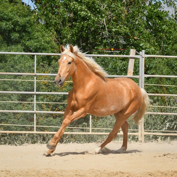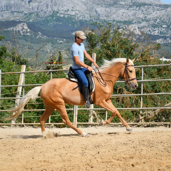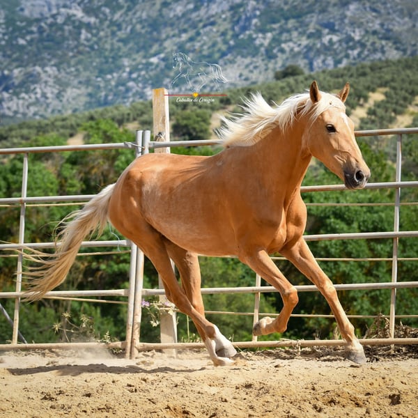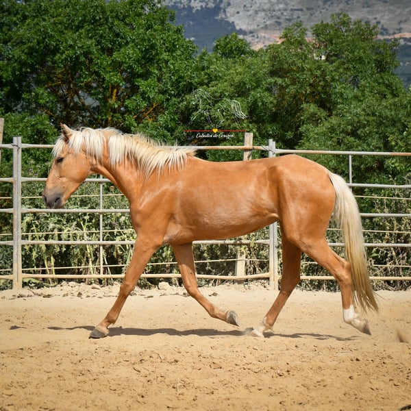 Mignonne pouliche de 4 ans Les photos datent de juin, lorsqu’elle venait tout juste de sortir du campo et n’était en selle que depuis trois semaines. Depuis, elle a pris un peu plus de courbes. Elle est en entraînement léger et a été montée en selle dans ses allures. À mon avis, c’est un cheval fantastique — à connaître cet hiver, continuer un peu, puis repartir de plus belle au printemps prochain. Une occasion idéale d’acquérir une jolie et encore inexploitée jument d’une couleur spéciale. Elle se trouve à Malaga. Le transport partout est possible.