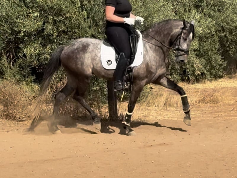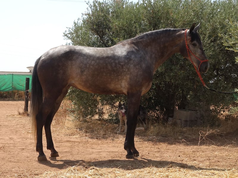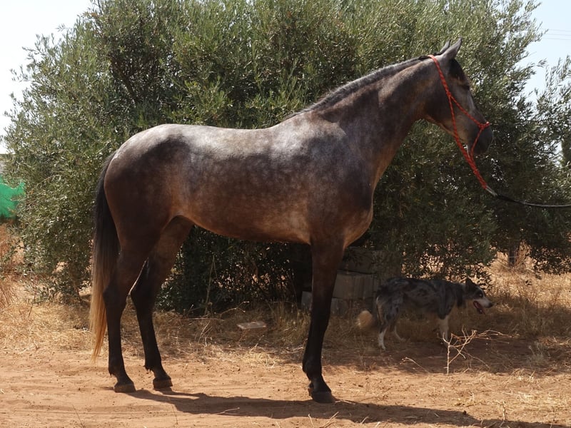 Amalia, mare born 2019 and ap. 158 cm. She's a cross between a Lusitano mare and Oldenburg stallion but without pedigree in her passport. Amalia is a beautiful mare with a lot of charisma and a sweet mentality. Amalia has very good movements with a lot of elasticity and cadence. She's very fun to ride and it feels like she has a lot of potential to reach the higher levels. She's comfortable to sit on and has a nice mouth with a soft contact. Amalia is well educated, does all lateral exercises, flying changes and started playing with piaffe and passage. She's easy to handle and also nice to go hacking with. Older X-rays are available. Amalia is located in southern Spain and we help with all the steps in the buying process. Read more about us at www.cthorsesales.com Contact: info@cthorsesales.com