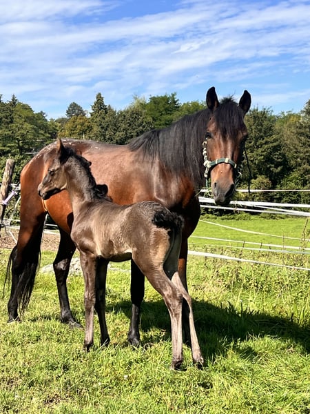 Due to an unreliable buyer, the little mouse is unfortunately available again. I am offering my wonderful 7-year-old Andalusian mare for sale. She is about 1.42 m tall and a real treasure to handle. She is very sweet, people-oriented and has been ridden recreationally. She is currently at foot with her 4-month-old foal, which can be weaned in about 2 months. The mare is an ideal partner for leisure and family. With her calm nature, she is wonderfully suited as a family horse and always places her full trust in her owner. The foal is also a little ray of sunshine - curious, open-minded and full of energy. It is growing up in a loving environment and is already showing promising development. It is possible to sell both together or to buy them separately as soon as the foal can be weaned. If you are looking for a gentle, uncomplicated mare - with or without a foal - please contact me. I will answer all your questions and look forward to placing them in the best hands! Mare 3900€ Foal 2500€ Both 5500€