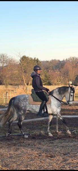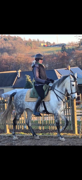 Wir verkaufen eine bildhübsche Andalusierstute. Tormenta ist 8 Jahre alt und hat eine Größe von 1,60m. Sie ist sehr rittig ob im Gelände oder auf dem Platz. Tormenta ist eine Stute die jedem gefallen möchte unter dem Sattel und das zeigt sie auch. Wir haben angefangen mit ihr Seitengänge zu reiten was sie sehr schnell lernt. Sie ist am Anfang ihrer reiterlichen Karriere und ich denke sie passt gut in die working ecquitation aber auch als gehobenes Freizeitpferd. Tormenta lebt bei uns im Offenstall in einer gemischten Herde. Wenn sie euer Interesse geweckt hat dann schreibt mir oder ruft einfach an 0163 9840641 da kann ich alle weiteren Fragen beantworten