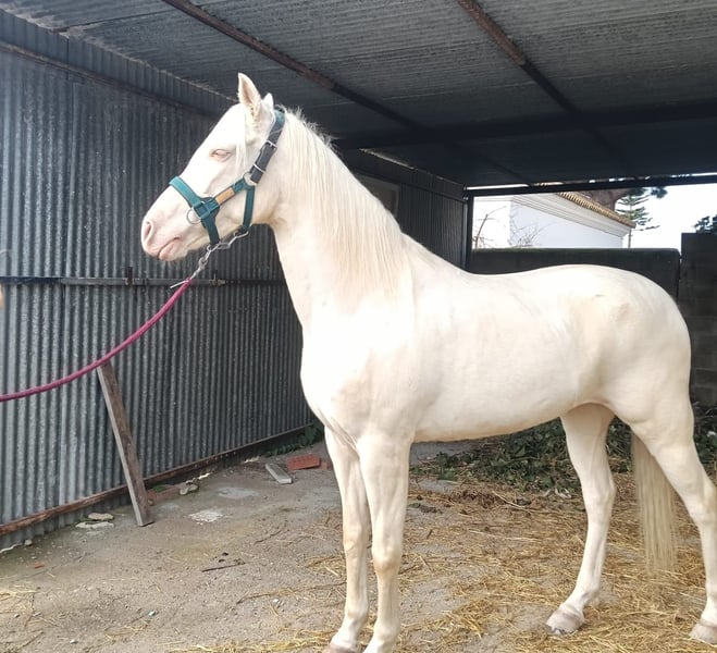 LUCIFER ...No idea who came up with this name for such a magnificent mare... 🤔 This Cremello lady with the special coat color ALBINA is 8 years old and will turn 9 in May. She stands approximately 15.5 to 15.8 hands. Very well-behaved and ridden by young riders everywhere—out in the fields, at fairs, and during festivals. In handling, she is very affectionate, well-trained, and easy to manage. She loads into the trailer and stable without issues. This is a fantastic opportunity to acquire a true gem at an affordable price 👌 Contact us via WhatsApp at 0034 670 097 903! Your Carmen