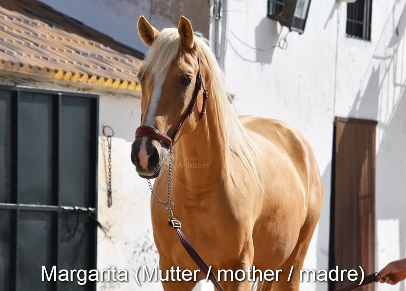 Carácter amable, curioso, rústico. Está afuera con su madre. Color especial. Pedigree: Antonio Guiral Guarga, Castillo Villafranca, Paco Martí. www.elegante-andalusier.com