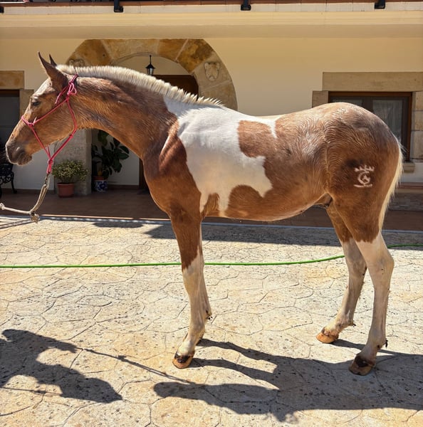 COLOR GOALS – Unique look, a smart choice – Pio Andalusian colt, yearling, with an absolutely special color that immediately catches the eye. A true eye-catcher – modern, rare, and exactly what is currently in demand. And the best part: Very attractive price of just 3,500 euros. Why he stands out: Striking Pio coat pattern – a genuine rarity Yearling stallion – young, moldable, and full of potential Modern type with presence A horse that already attracts attention Smart buyers don’t wait And let’s be honest: Once he’s gone, he’s gone.