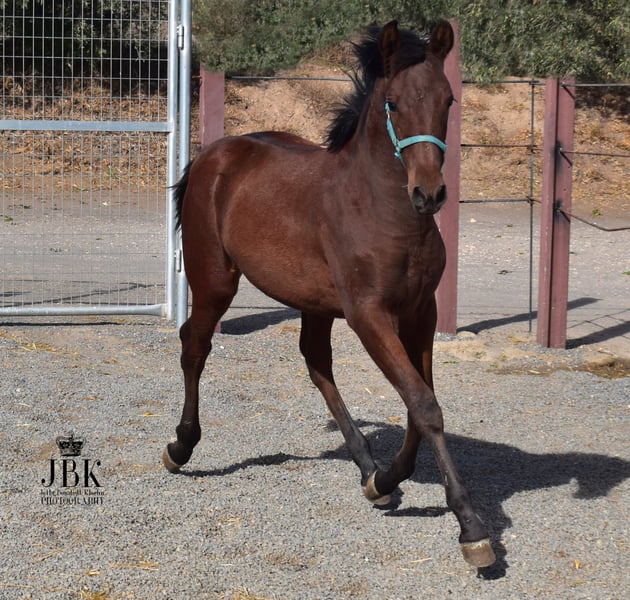 Il stallone andaluso Saleroso è un puledro molto socievole e sicuro di sé, un fantastico soggetto in crescita che mostra andature molto eleganti. È nato il 29 aprile 2025. Suo padre è un stallone PRE Rapp, di colore molto scuro, e sua madre una femmina di Andaluso Lusitano. Si prevede che raggiungerà un'altezza al garrese di circa 1,63 m, certamente non più piccolo. Saleroso è microchippato e in possesso del passaporto europeo. Attualmente stiamo iniziando ad insegnargli alcune nozioni di base del puledro, come la pulizia, il prendere i piedi, e tutte quelle piccole cose che gli saranno utili in futuro. Anche il distacco dalla madre sta procedendo, e finora si mostra molto tranquillo in tutte queste fasi. Si lascia già condurre a mano con il capestro e segue il trainer con fiducia.