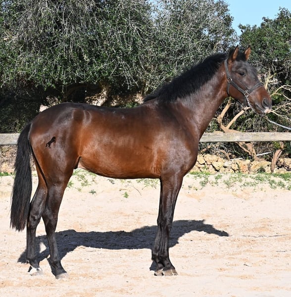 Este semental andaluz nacido en 01/2024 (pasaporte de équido) es un pequeño travieso. Es un auténtico pillo que, durante nuestra sesión de fotos, en medio de vientos de 90 km/h y ráfagas de tormenta de hasta 120 km/h, todavía tenía energía de sobra. Sería recomendable repasar un poco la educación básica, ya que disfruta mordisqueando la cuerda y, al llevarlo, cuestiona quién manda realmente y no le gusta quedarse quieto; le resulta mucho más divertido dar vueltas alrededor de la persona :D ¡Eso es típico de un pequeño pillo! Sin embargo, nunca se enfrenta al jinete y tiene un carácter muy amable. Pero necesita a alguien que le diga claramente que no (¡y probablemente repita esa orden unas 20 veces al día hasta que quede clara!). Por eso, se ofrece a un precio muy asequible, siendo una opción ideal para quien guste de caballos jóvenes que aún necesitan reforzar su educación básica. Sus movimientos son muy correctos y, cuando se trabaja en el picadero y se quita algo de energía, se vuelve mucho más tranquilo (¡a pesar de la tormenta!). Su tamaño final esperado es de aproximadamente 1,62 m de alzada y, por supuesto, existe la opción de castración en el lugar. Su ubicación actual es Menorca. Con gusto puedo organizar una revisión de salud para potros en el lugar, transporte o incluso tu viaje, si deseas venir a verlo en persona. Para más detalles, puedes consultar mi página o contactarme directamente. Saludos desde España