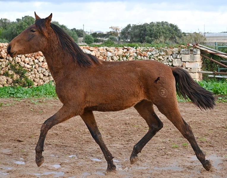 Deze PRE-ruin, geboren in 2024, is nog steeds een schattig pareltje. Maar hij laat al momenten zien waarop hij zich trots beweegt en laat zien wat voor een knappe vent hij wordt ;) Aan vaderskant heeft hij veel Escalera-bloed in zijn afstamming, wat waarschijnlijk ook bijdraagt aan zijn vriendelijke en open karakter. Hij kwam steeds nieuwsgierig naar me toe tijdens de vrije beweging om even hallo te zeggen. De fokker hecht veel waarde aan het feit dat de hengsten minimaal drie jaar opgroeien in een hengstenhengstengroep. Zo heeft hij tijdens de regenseizoen op Menorca een pluizige vacht en wat manen in de vacht, maar dat is slechts een teken van natuurlijk opgroeien ;) De jonge ruin is zeer nieuwsgierig en open, en vertoont geen hengstengedrag, hoewel hij nog volledig onervaren is. Hij beweegt mooi en zijn verwachte eindmaat ligt net boven de 1,60 m. Voor degenen die geen hengst kunnen houden, is er natuurlijk ook de mogelijkheid tot castratie ter plaatse. Zijn locatie is Menorca. Video's en afstamming op aanvraag beschikbaar. Graag organiseer ik ter plaatse een veterinaire keuring, training, castratie, transport of zelfs uw reis, mocht u persoonlijk willen komen kijken. Details hierover bespreek ik graag via mijn website of in een gesprek. Groeten uit Spanje