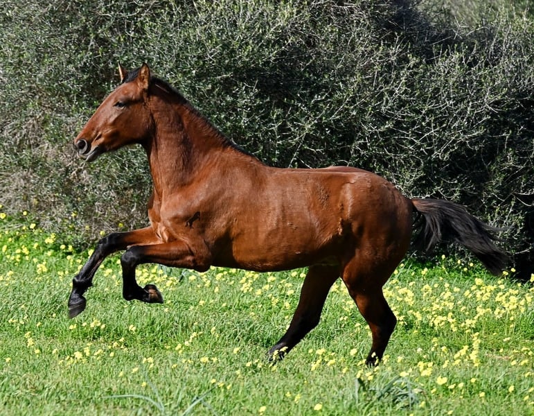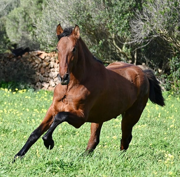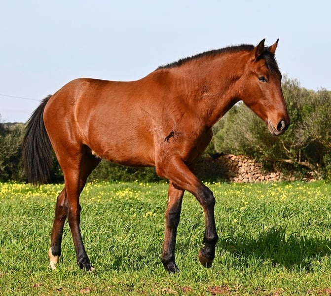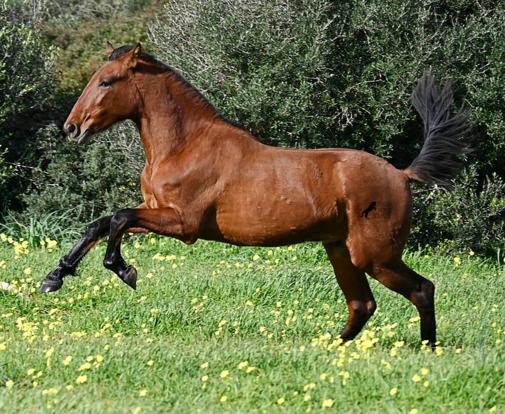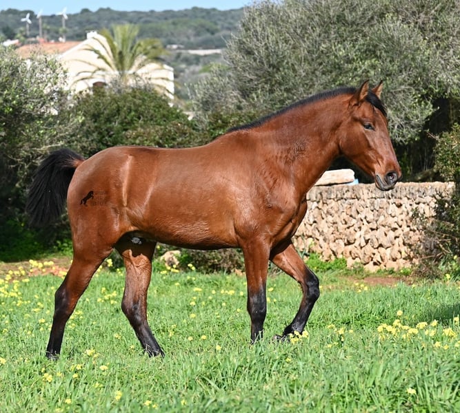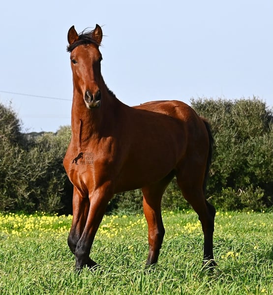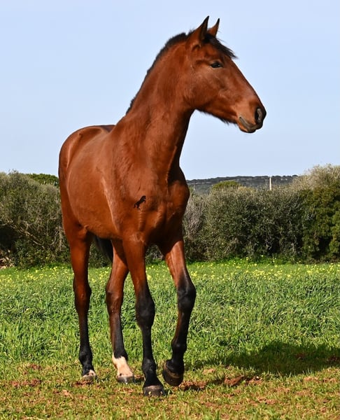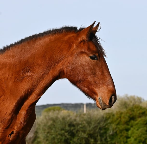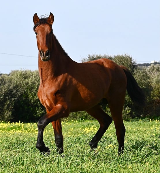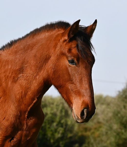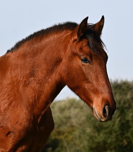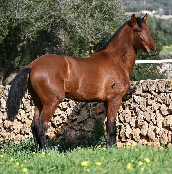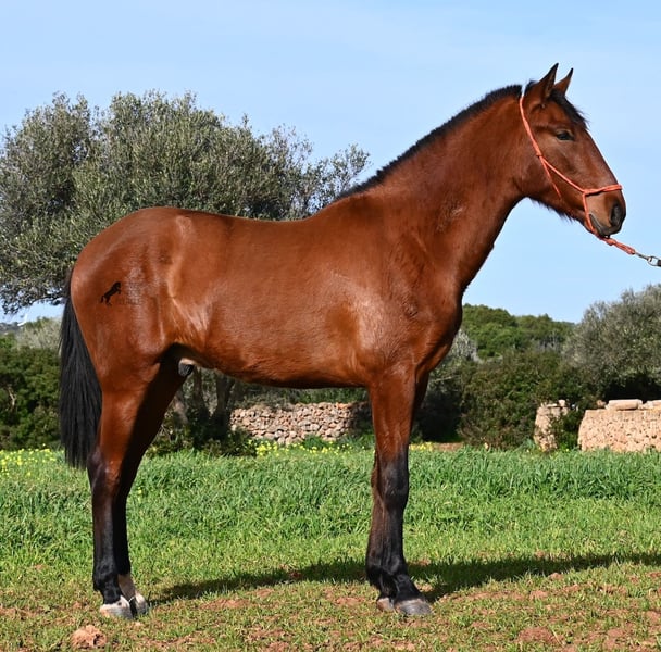 Este potro PRE nacido en verano de 2024 (Andaluz con certificación de raza de la ANCCE) ya llama la atención por su presencia. Actualmente vive las 24 horas en un paddock de resistencia y, gracias a los suelos duros de Menorca, tiene una excelente calidad de casco y está bien atado. Aunque vive en un entorno tan robusto, es increíblemente cariñoso y busca contacto amistoso en cuanto uno se acerca a la pradera. Su linaje hará latir más fuerte a los aficionados del caballo español. Por parte de padre, desciende de SENILLOSA, con ESCALERA en sus ancestros. Por parte de madre, es nieto de DARTURO III, de la cría RETAMALES, y su madre también tiene sangre de PLAZA DE ARMAS y CAMPO BAJO. Esta excelente selección de cría se refleja en él, ya que no solo es hermoso desde ya, con una cabeza típica de la raza y un exterior barroco, sino que también presenta un movimiento excelente, que demuestra con soltura a pesar de los terrenos pedregosos. Un caballo joven y feliz, a un precio justo para la calidad que ofrece. Su padre mide 1,70 m y él también será un caballo de gran tamaño. Actualmente se encuentra en Menorca. Videos y genealogía disponibles bajo petición. Con gusto puedo organizar una revisión de potros en el lugar, transporte o incluso su viaje si desea venir a verlo en persona. Para más detalles, consulte mi página o hable conmigo. ¡Saludos desde España!