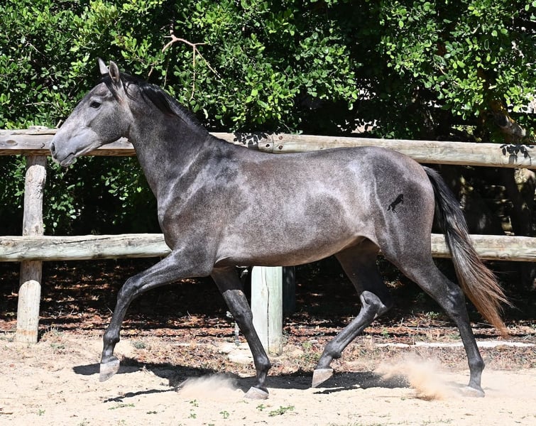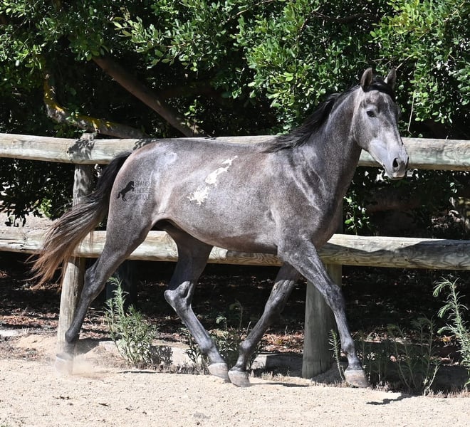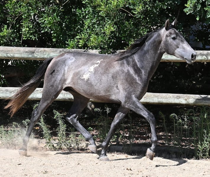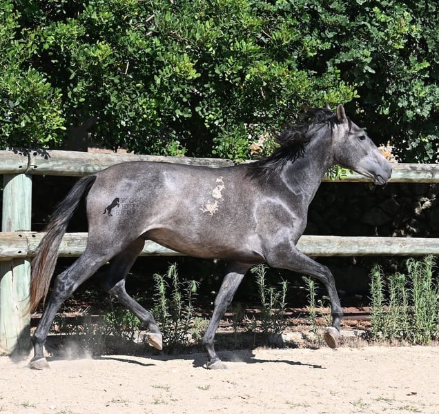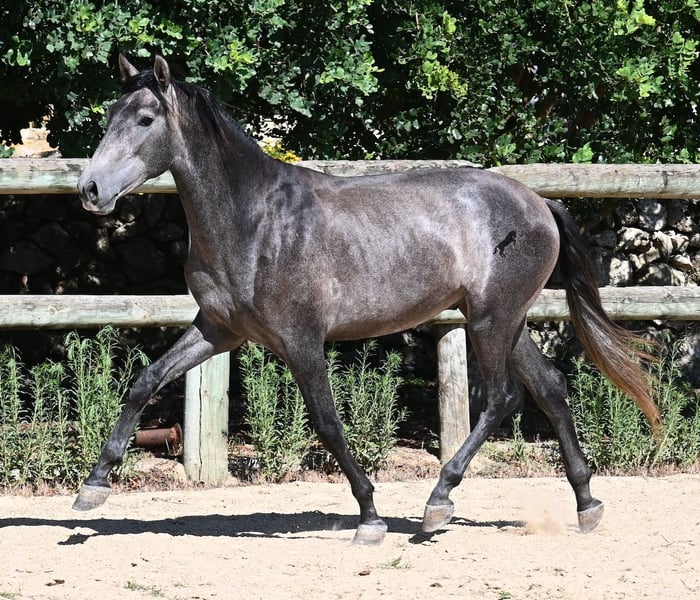This PRE stallion, born in spring 2023 (Andalusian with breed certification from ANCCE), is still a real youngling. Since he has a lot of Cartujano blood (Cartusian), he is a late developer, as these former horses of the kings take their time to become truly proud and impressive horses. And he is being given time; just a few weeks ago, he was separated from his stallion buddy and is now in a large paddock box. Twice a week, gentle groundwork is done with him, following horsemanship principles, to provide him with a solid foundation for his future life as a riding or driving horse. He already picks up his hooves, allows himself to be groomed, and responds well to body language during groundwork, moving nicely into backing up. He currently stands at 155 cm, with a few more centimeters expected to come—like I said, a late developer ;) Castration on-site would be possible if stallion keeping is not an option. His location is Menorca. Videos and pedigree available upon request. I would be happy to organize a vet check, castration, transport, or even your travel arrangements should you wish to come and see him in person. Details can be found on my page or discussed in conversation.
