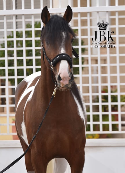 Ce cheval espagnol d'exception, un étalon pie andalou, est né le 1er mai 2023. Il possède un magnifique marbré autour de ses taches brunes, avec un effet marbré gris. Actuellement, Bandolero commence à travailler un peu à la longe, mais en raison de son jeune âge, il doit encore prendre le temps de se développer. Il a déjà acquis les bases avec l’humain, comme le pansage et le pansage en longe, ce qui se passe très bien. Il a un caractère vif, est éveillé et curieux de tout. Sa taille au garrot devrait se situer autour de 1,58 à 1,60 m. Il peut être castré sur place si cela facilite la décision d’achat (les frais étant à la charge de l’acheteur).