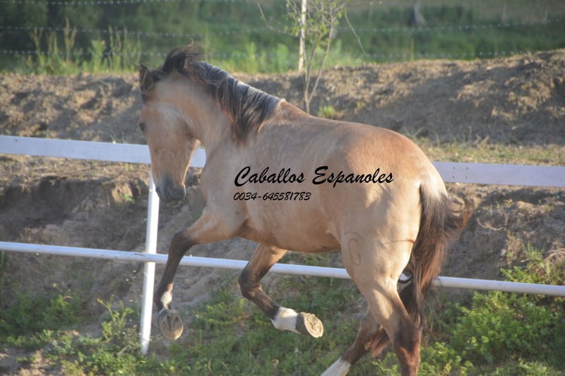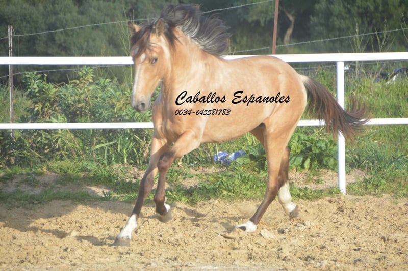 Dieser hübsche andalusische Falbhengst sucht sein foreverhome. Der junge Mann ist neugierig und aufgeweckt. Immer an neuen Dingen interessiert. Er ist gut erzogen und im Umgang brav. Der Hengst ist in angeritten in den drei Grundgangarten. Bei der Arbeit zeigt er sich immer arbeitswillig und mit Spaß am Lernen. Das wird ein toller Freizeitpartner. Das Pferd wird im Auftrag verkauft. Er kann gerne bei uns noch in Beritt bleiben. Eine AKU wird kurzfristig organisiert. Internationaler Transport.