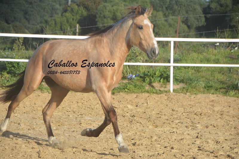 Questo bel stallone andaluso palomino cerca la sua casa per sempre. Il giovane è curioso e vivace, sempre interessato a nuove cose. È ben educato e si comporta bene durante le interazioni. Lo stallone è stato montato e si muove nelle tre andature di base. Durante il lavoro si mostra sempre volenteroso e con piacere nell'apprendere. Sarà un ottimo compagno per il tempo libero. Il cavallo viene venduto per conto di un terzo. Può rimanere da noi in addestramento. Una visita veterinaria verrà organizzata a breve. Trasporto internazionale disponibile.