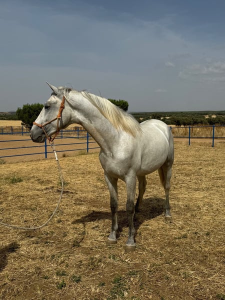 Bellissimo puledro di 2 anni che attualmente misura 158 cm/15,2 hl. Non solo è bello, ma è anche un ragazzo molto educato. Sta in piedi tutto il giorno per essere strigliato e non ha alcun comportamento da stallone. Ha 3 andature belle, corrette e diritte. Una volta domato e prodotto, sarà un eccellente cavallo da dressage. Aperto a visite o raggi X. Tutto disponibile per visualizzare se si può viaggiare al cortile. Situato a Badajoz, Spagna. Spedizione in tutto il mondo disponibile, contattateci per un preventivo.