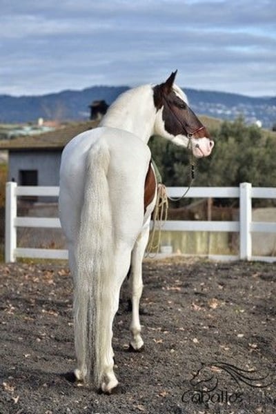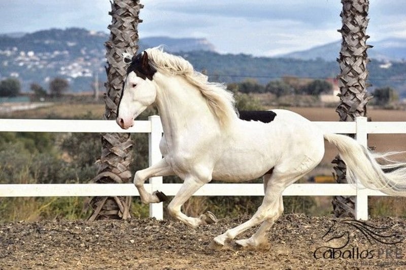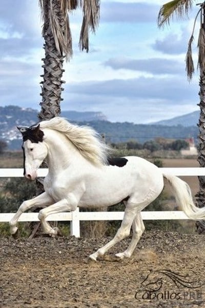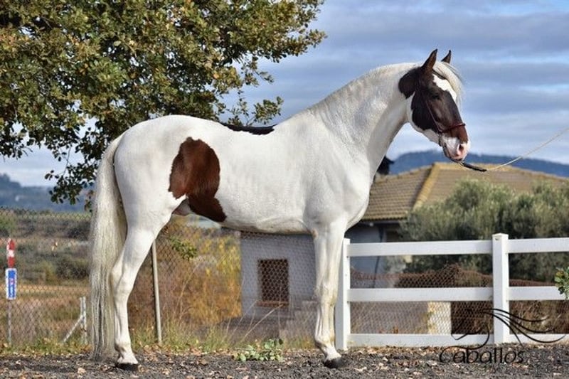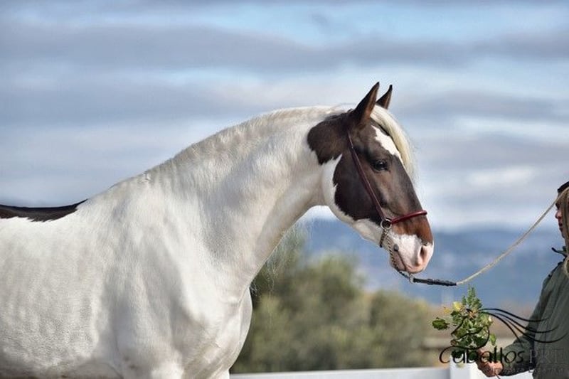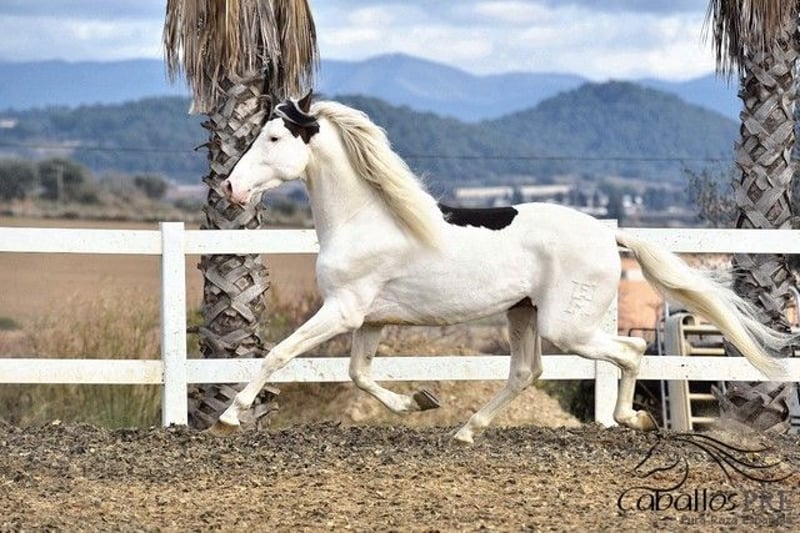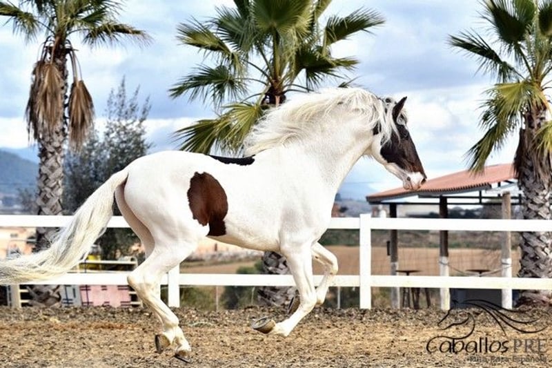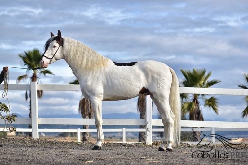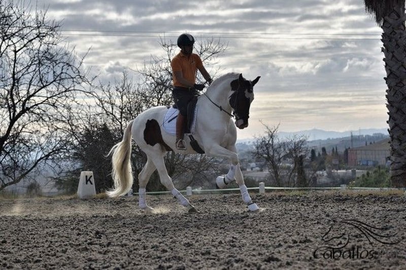 Deze buitengewone "schecke" heeft niet alleen uitstekende gangen, maar ook een top karakter. Hij is momenteel ongeveer 1,68 m groot. Hij is veilig aangelegd in de gangen en weet ook hoe hij in het terrein moet gaan. Hij blijft altijd rustig en makkelijk in de omgang, zowel op het dressuurbaan als in het terrein. Hij heeft een geweldige werkhouding en beschikt over uitstekende gangen. Zijn ouders zijn beide PRE's (een zwarte en een vliegende schimmel). Vanwege zijn scheckering krijgt hij echter geen papieren van de Spaanse fokvereniging, omdat schecken daar niet zijn toegestaan. Hij is geregistreerd als Caballo de Deporte Español (C.D.E.) en heeft dus papieren als CDE. Hij is het ideale paard voor mensen die het bijzondere waarderen en tegelijkertijd niet willen inleveren op kwaliteit. Hij kan uiteraard nog ter plaatse worden bekeken. Locatie: Barcelona, Spanje Voor meer informatie over hem kunt u contact met ons opnemen via telefoon. We sturen graag video's na een persoonlijk gesprek. Anonieme aanvragen worden niet beantwoord. Transport kan wereldwijd worden geregeld. Bezichtiging, na afspraak, is op elk moment mogelijk.